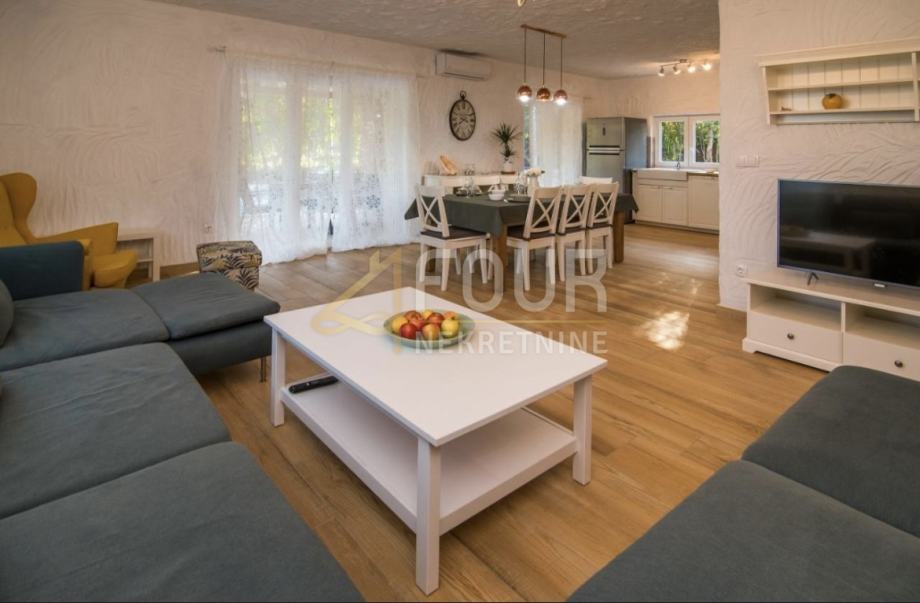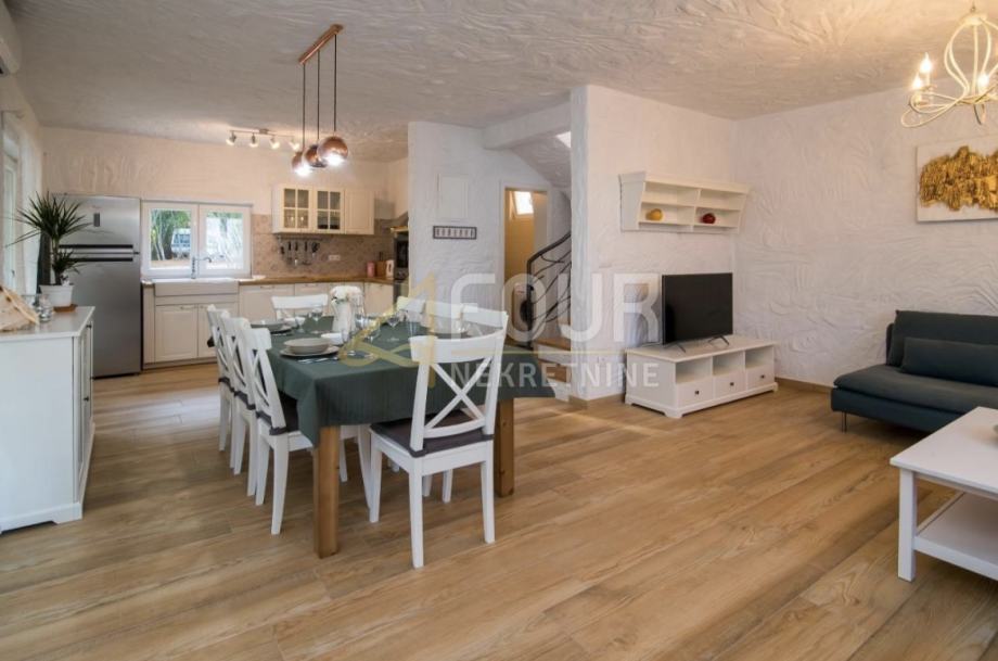 Prizemlje obuhvaća kuhinju s blagovaonicom i dnevnim boravkom koji vodi na prostranu terasu te dodatnu kupaonicu.