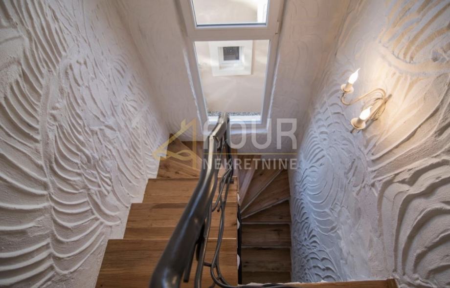 Kuća se prostire na tri etaže – suteren, prizemlje i kat, ukupne površine 200 m2.