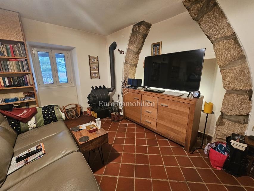 Kuća je dobro održavana, namještena, a ima peć na drva.
