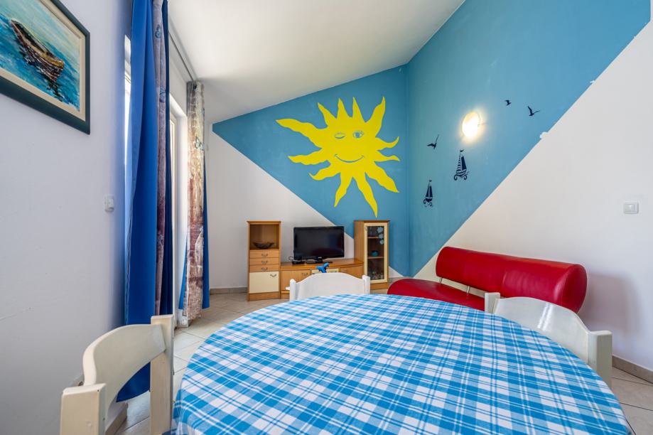 U mirnom dijelu mjesta Šilo na otoku Krku, na svega 500 metara od mora, nalazi se ovaj šarmantni apartman na prvom katu ukupne površine 47 m². Smješten u manjoj stambenoj jedinici s posebnim ulazom, apartman nudi mir, privatnost i funkcionalan raspored – savršen za odmor ili turistički najam.