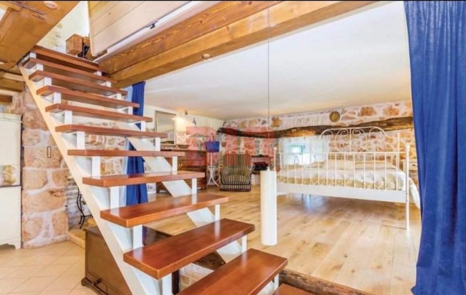 Ova lijepo uređena kamena vila u autohtonom stilu se sastoji od prizemlja,kata i visokog potkrovlja.Sve etaže su povezane unutarnjim stubištem i čine jednu cjelinu
