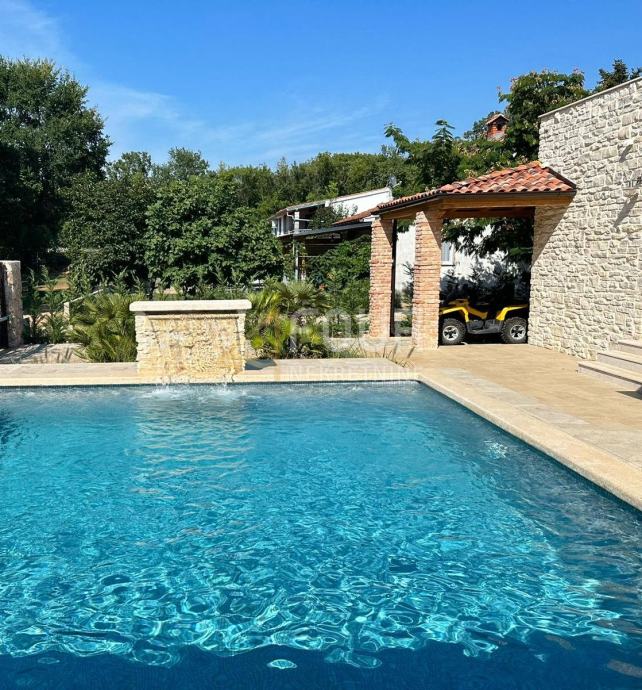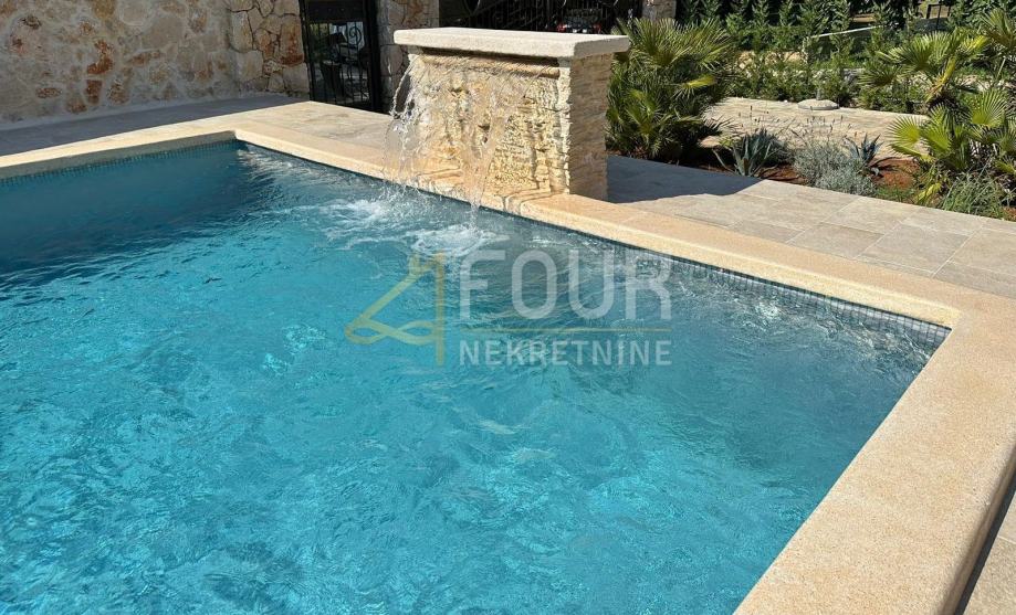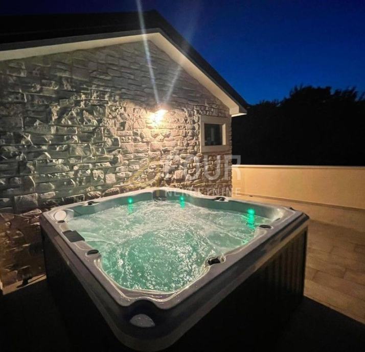 U dvorištu se nalazi originalni jacuzzi i bazen od 32.5m2 s mozaikom, slanom vodom i vrhunskom tehnikom koja uključuje grijanje bazena, dok je prostor za roštilj u kamenu savršeno mjesto za okupljanje s obitelji i prijateljima.