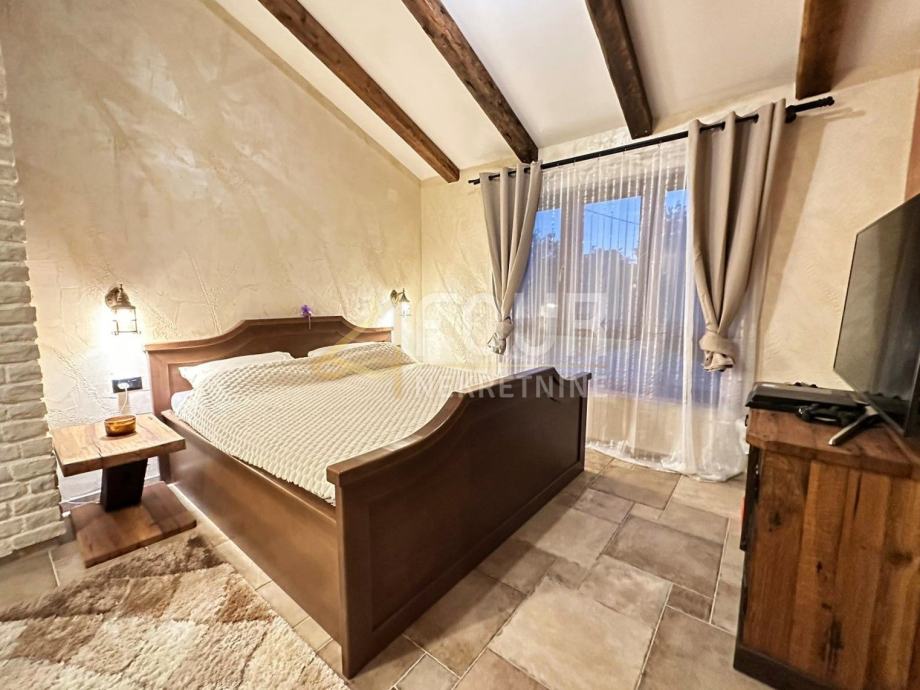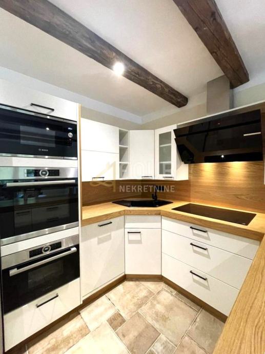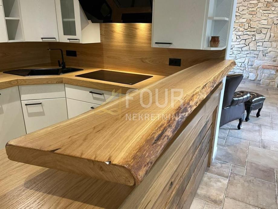 Kuća također ima balkon i lođu, čime se povećava stambeni prostor. Opremljena je podnim grijanjem Vailant, dok kvalitetna njemačka stolarija Salamander s troslojnim staklom jamči izvrsnu izolaciju. Mitsubishi klime osiguravaju dodatnu udobnost, a namještaj od masivnog hrasta daje poseban pečat interijeru.