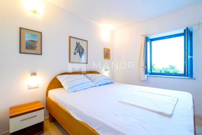 Manor predstavlja samostojeću kuću s četiri stambene jedinice, udaljenu 150 m od mora.