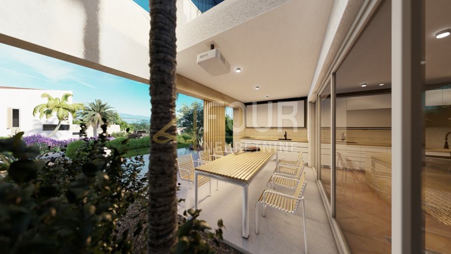 Na prodaju je moderna samostojeća vila s bazenom na otoku Krku. Ova suvremena novogradnja planirana za 2026. godinu pruža 155,20 m2 neto stambenog prostora raspoređenog na dvije etaže, uz bogate vanjske površine i pažljivo oblikovan okoliš.