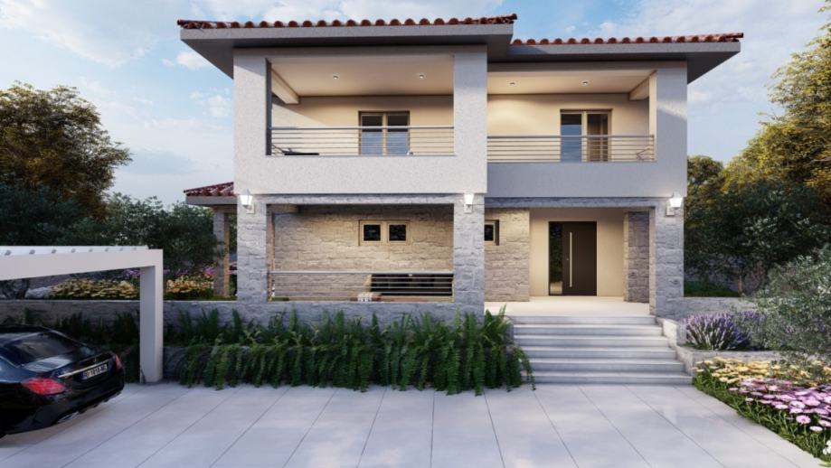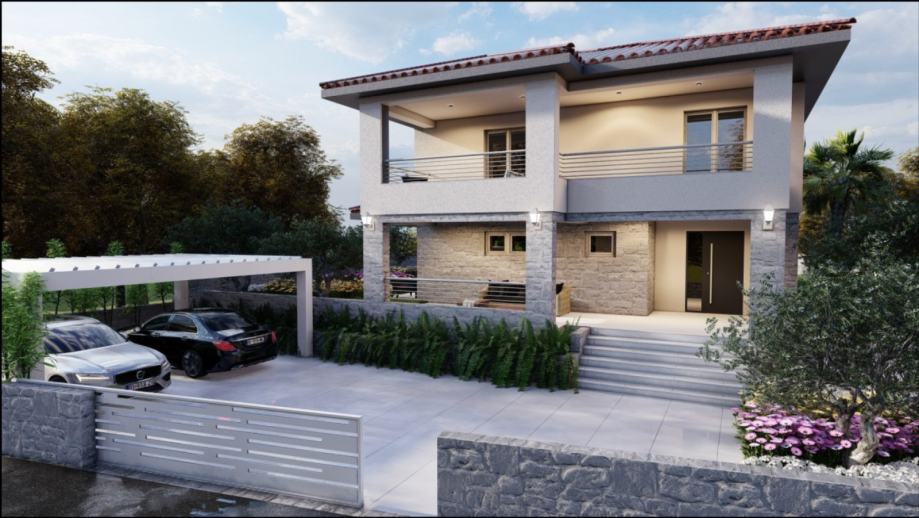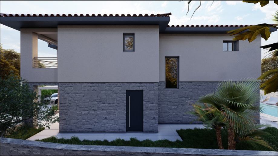 Prodaje se vila s bazenom u izgradnji na lijepoj i mirnoj lokaciji u okolici Dobrinja na otoku Krku. Odlikuje ju okućnica s predivnim vrtom i natkrivenim terasama.
