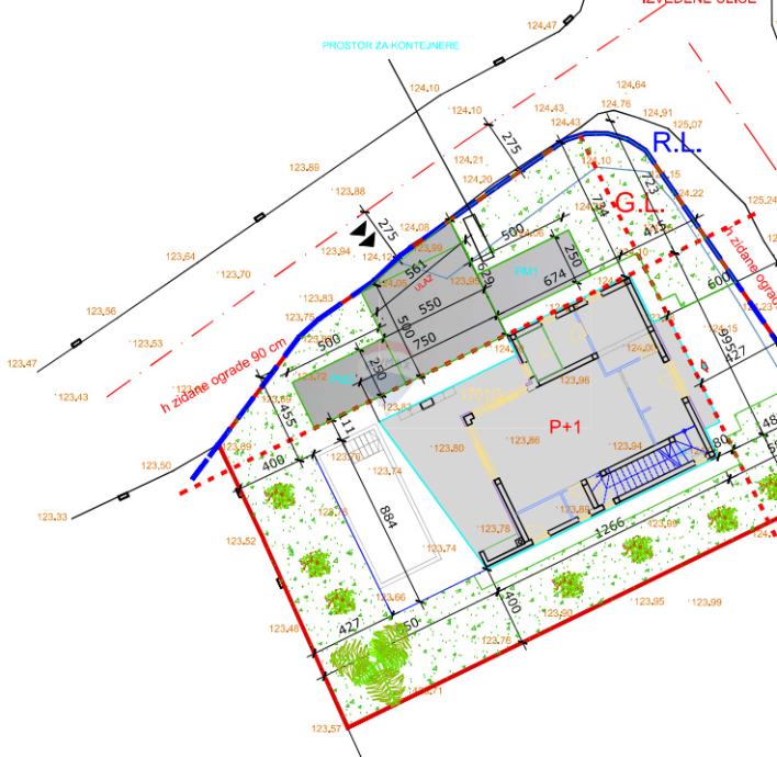 Okućnica je uređena i ozelenjena, s bazenom površine 25,16 m² i pripremom za dogrijavanje vode, kao i sunčalištem. Također je osiguran parking za više automobila.