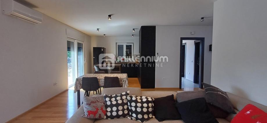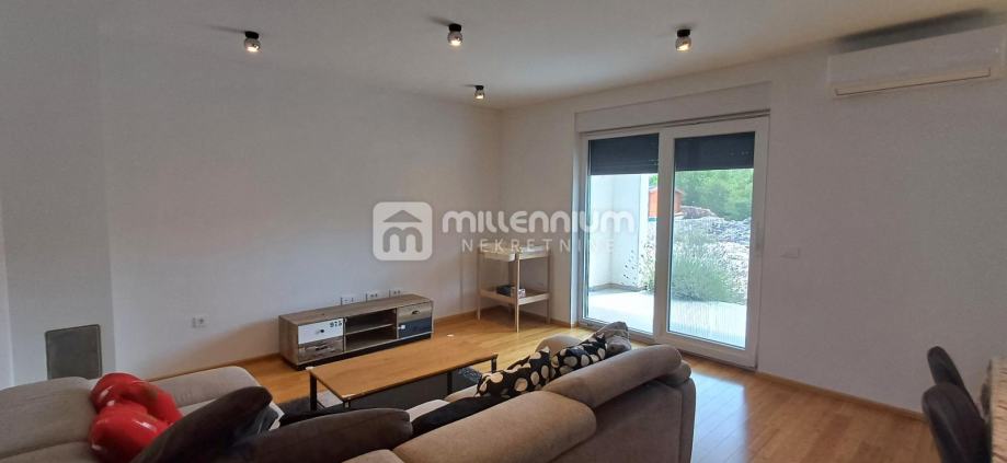 U prizemlju se nalazi ulazni hodnik, moderno uređenu kupaonicu, prostrani dnevni boravak koji je povezan s kuhinjom i blagovaonicom u otvorenom konceptu, spremište, kotlovnicu te dodatnu spavaću sobu. Iz dnevnog boravka izlazi se na prostranu terasu koja poziva na opuštanje i uživanje u mediteranskom ambijentu.