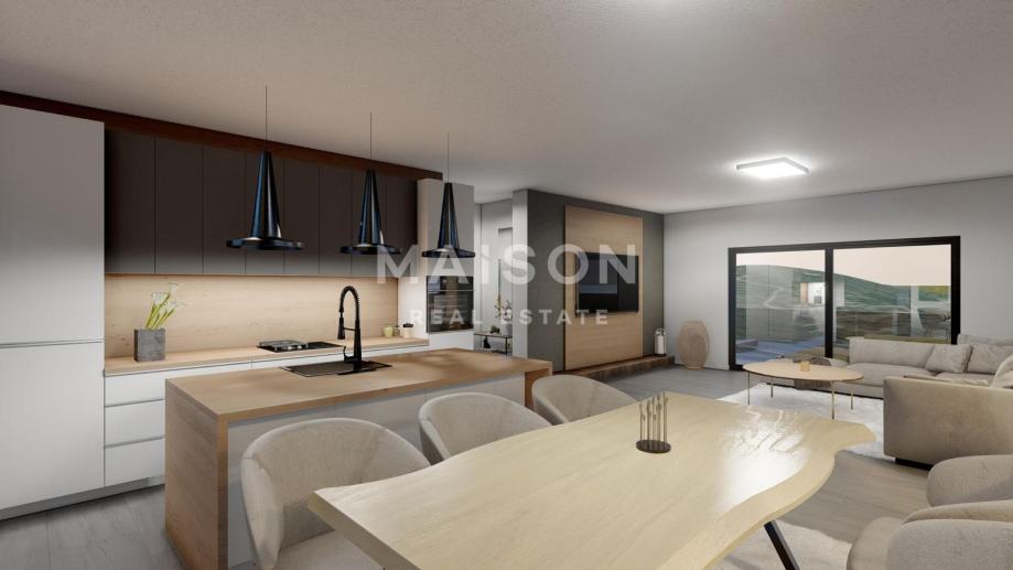 Njegova neto površina od 41,27 m² idealno je raspoređena kako bi svaki dio prostora bio funkcionalan i ugodan za korištenje. Prostrani dnevni boravak spojen je s elegantnom kuhinjom i blagovaonicom, stvarajući otvoren, svijetao prostor savršen za opuštanje ili druženje.