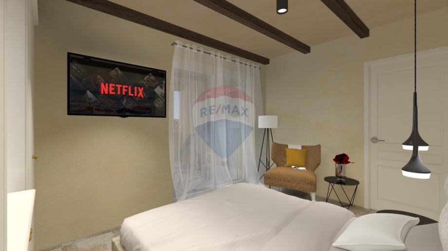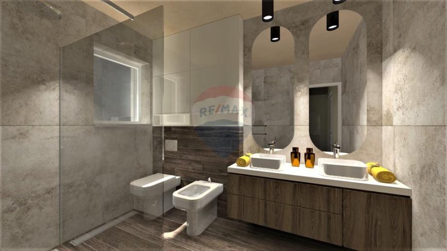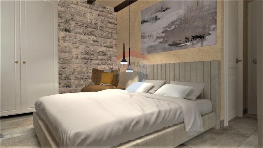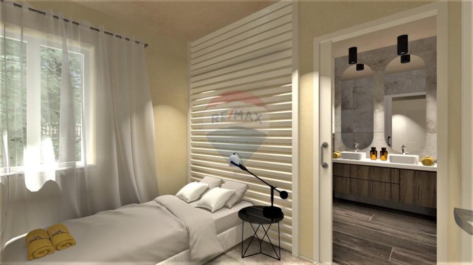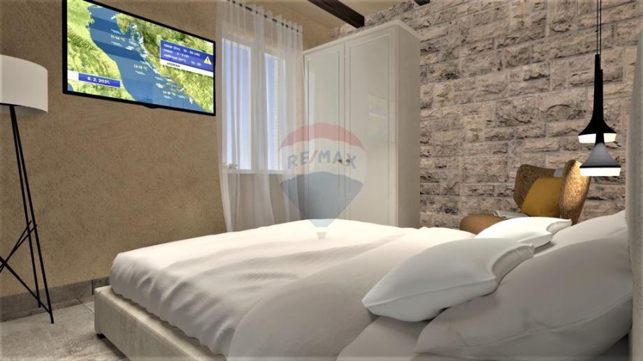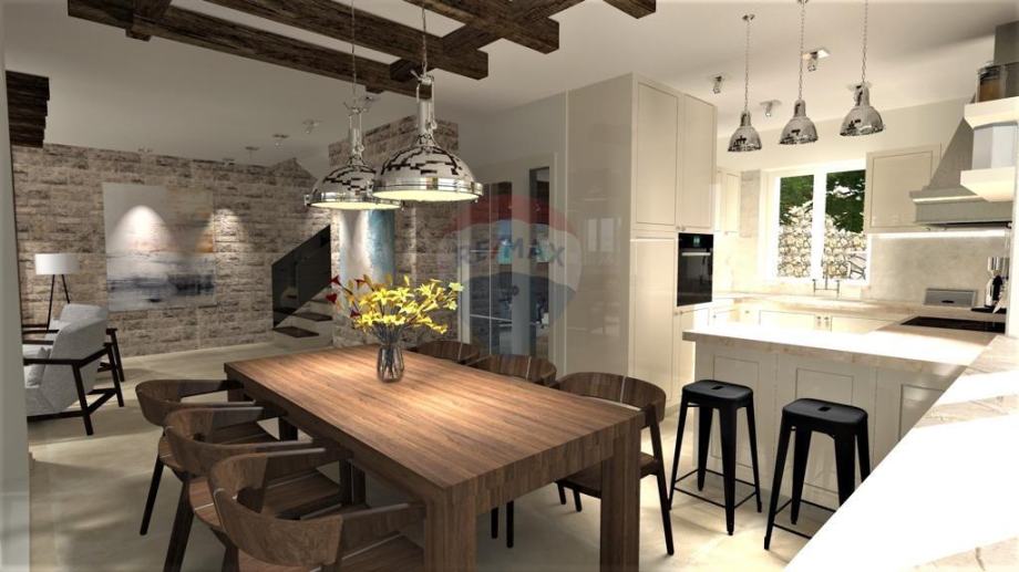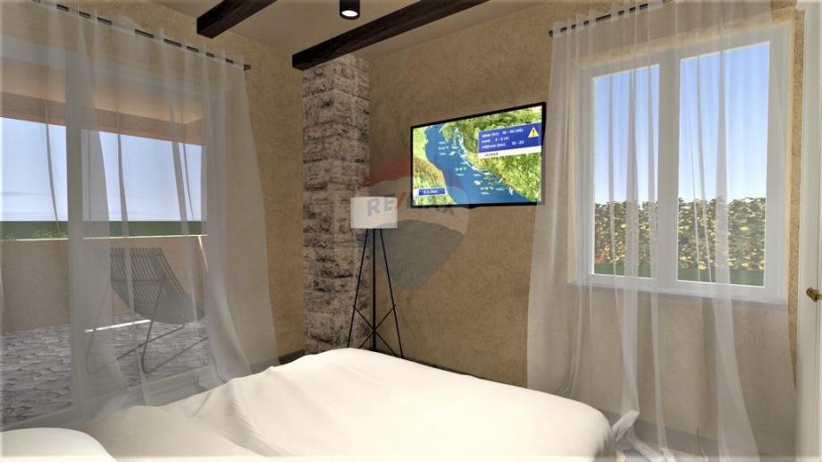Moderna mediteranska vila, ukupne stambene površine 136 m2, nalazi se u mirnom dijelu okolice Vrbnika. Sastoji se od prizemlja i prvog kata. U prizemlju se nalaze kuhinja s blagavaonicom, dnevni boravak, toalet i utility, te velika natkrivena terasa. Na prvom katu smještene su soba sa vlastitom kupaonicom, te jos dvije sobe koje dijele jednu kupaonicu, te natkrivena prostrana terasa. Na lijepo uređenoj okućnici nalazi se bazen sa sunčalištem, konoba kao odvojena građevina, te parking za više vozila. Kvalitetna gradnja i oprema, klimatizirano, vrhunska keramika, pvc stolarija. Prodaje se nenamješteno. U mirnom dijelu okolice Vrbnika. Predviđeni završetak radova je 01.07.2023. Nekretnina idealna za život, kao i za turističko iznajmljivanje.