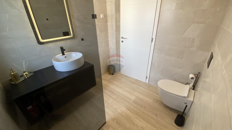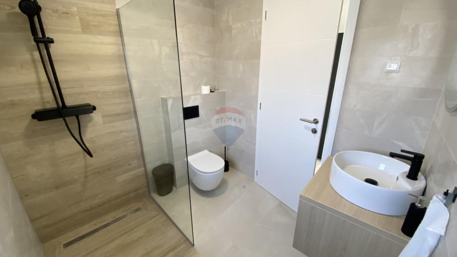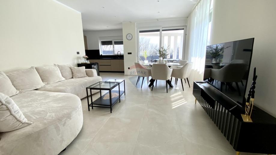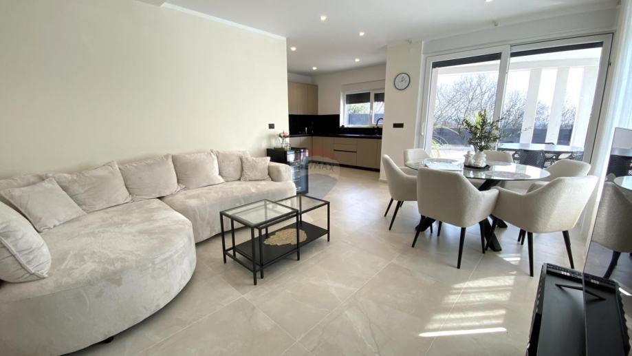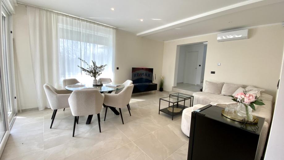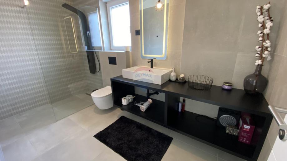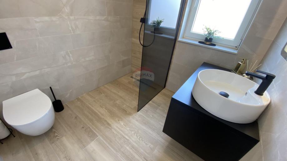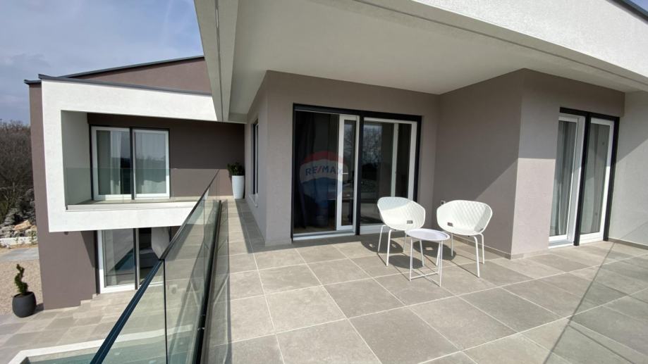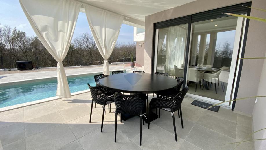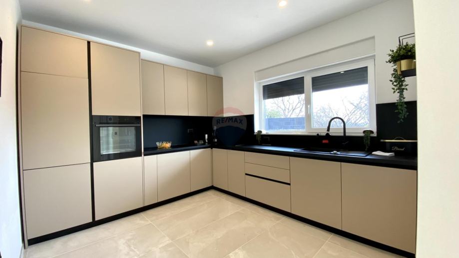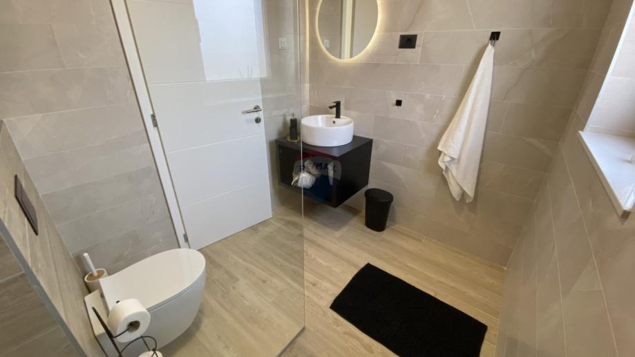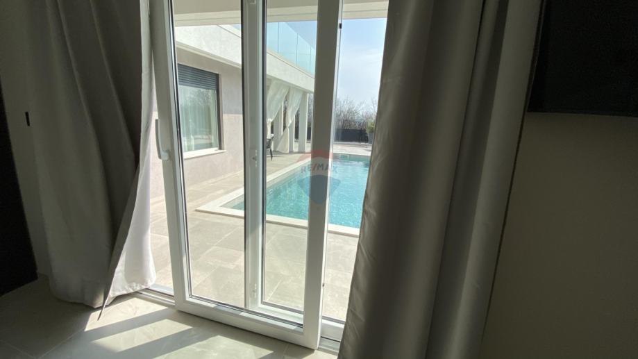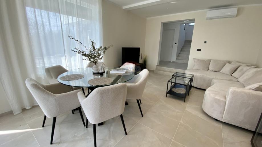 Nekretnina je pomno namještena i kao takva se prodaje. Po cijeloj kući, okućnici i bazenu je postavljena kvalitetna talijaska keramika.