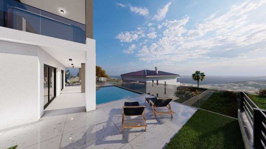 Ovaj ekskluzivni stan smješten je u zgradi modernog dizajna s liftom i samo četiri stambene jedinice, što osigurava mir i privatnost. Zgrada je izgrađena korištenjem suvremenih tehnika i najkvalitetnijih materijala, čime se osigurava dugovječnost i visoki standard stanovanja. Velika terasa predstavlja dodatnu vrijednost, pružajući savršeno mjesto za uživanje na otvorenom.