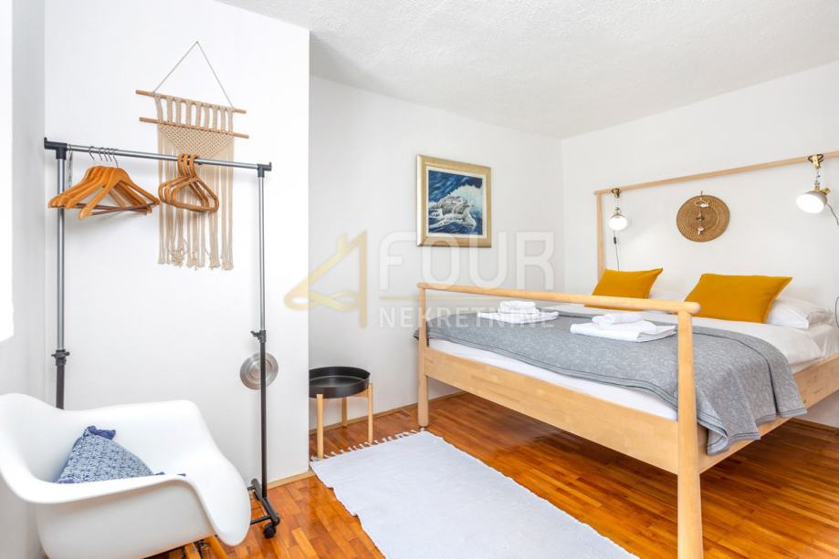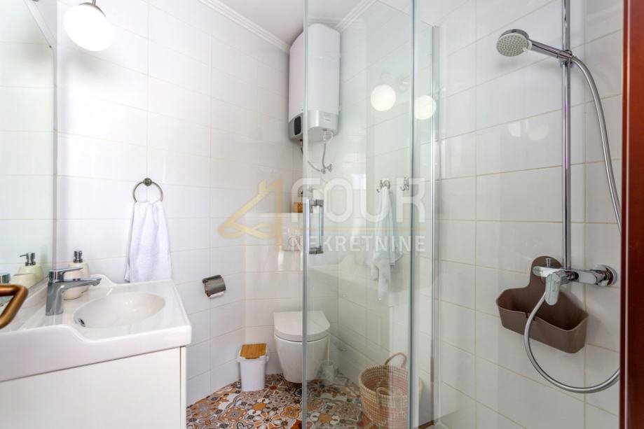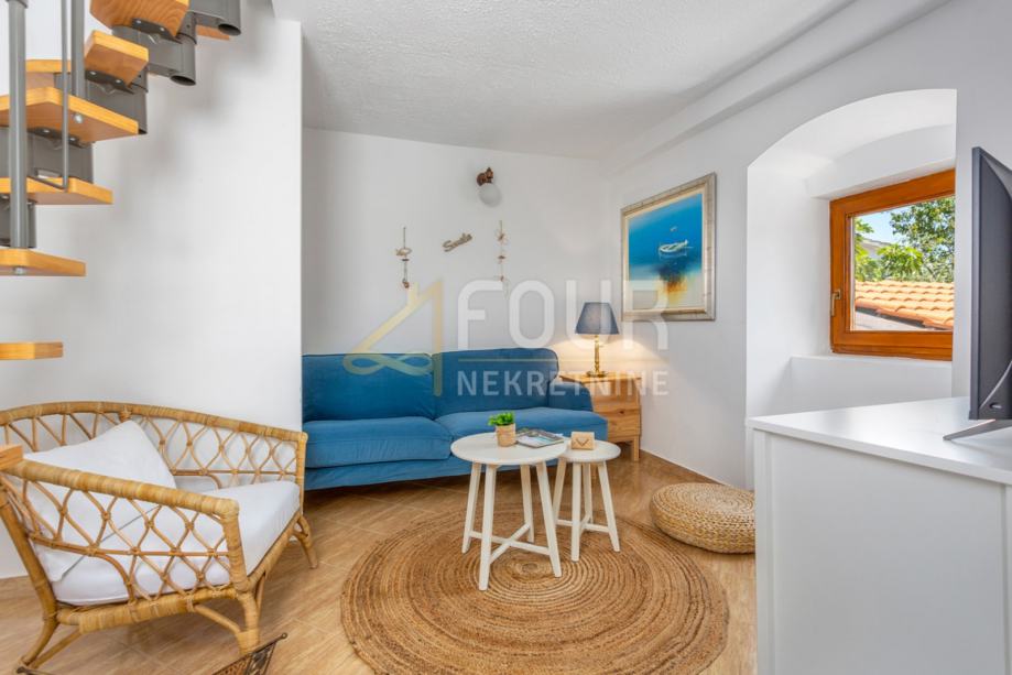 Sastoji se od dva potpuno odvojena dvoetažna stana s posebnim ulazima, što je čini idealnom za zajedničku kupnju dviju obitelji ili kao investiciju za turistički najam. Prvi stan obuhvaća prizemlje s hodnikom, kupaonicom te dnevnim boravkom povezanima s kuhinjom i blagovaonicom, dok se na katu nalaze dvije spavaće sobe. Drugi stan raspoređen je na katu i potkrovlju te uključuje dnevni boravak s kuhinjom, kupaonicu i spavaću sobu, dok se u potkrovlju nalazi prostrana soba s više ležajeva.