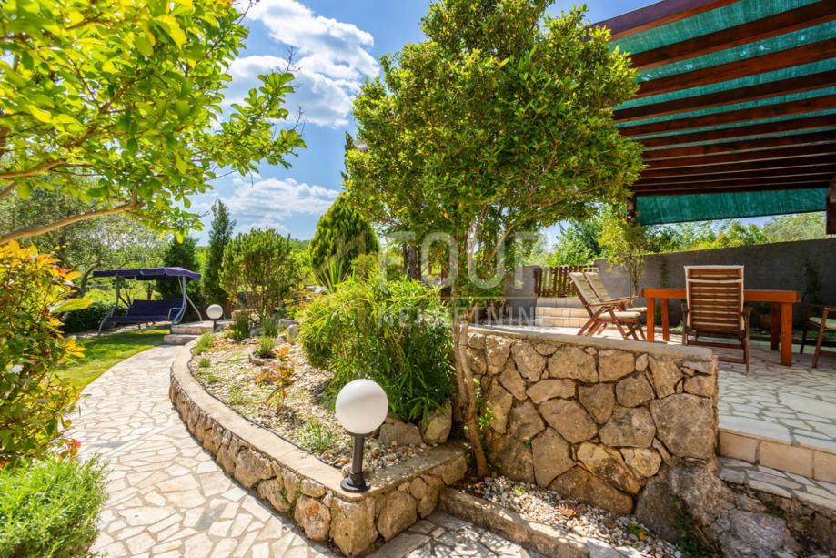 Prodaje se samostojeća vila s bazenom smještena u mirnom mjestu u okolici Vrbnika, okružena zelenilom i privatnošću, a svega oko 2 km udaljena od mora. Kuća je ukupne stambene površine oko 205 m2, izgrađena na parceli od 549 m2, s lijepo uređenom okućnicom površine 317 m2.
