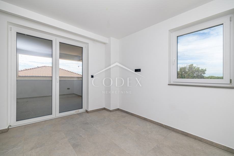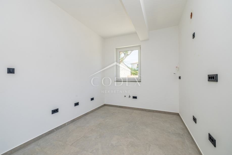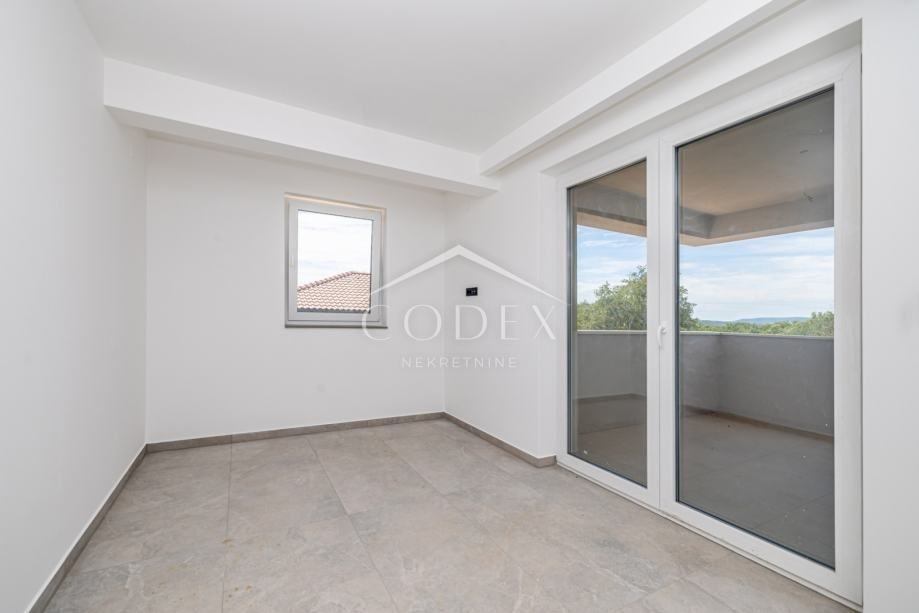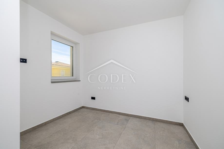 Vila je veličine 130 m2 raspoređenih na dvije etaže. U prizemlju raspoređene su dnevne prostorije, a na katu 3 spavaće sobe sa dvije kupaone i terasom s otvorenim pogledom na okolinu i more. Kuća je orijentirana prema zapadnoj obali otoka Krka i većim dijelom dana osunčana.