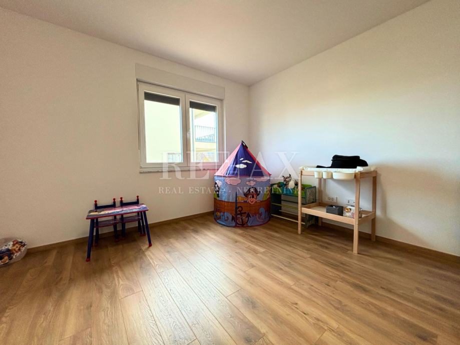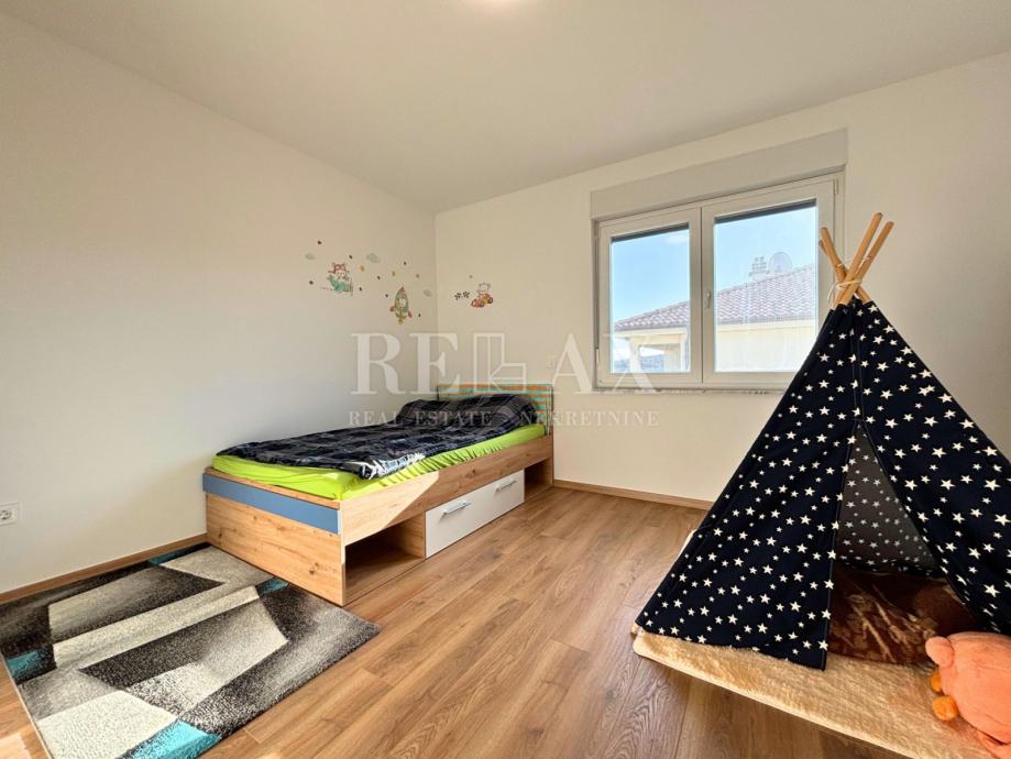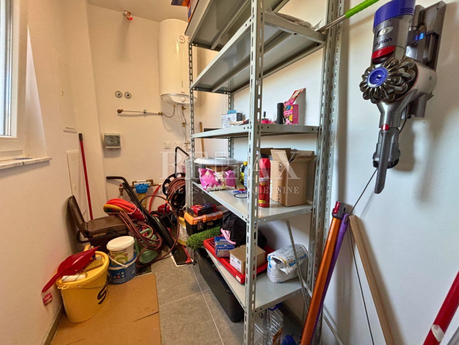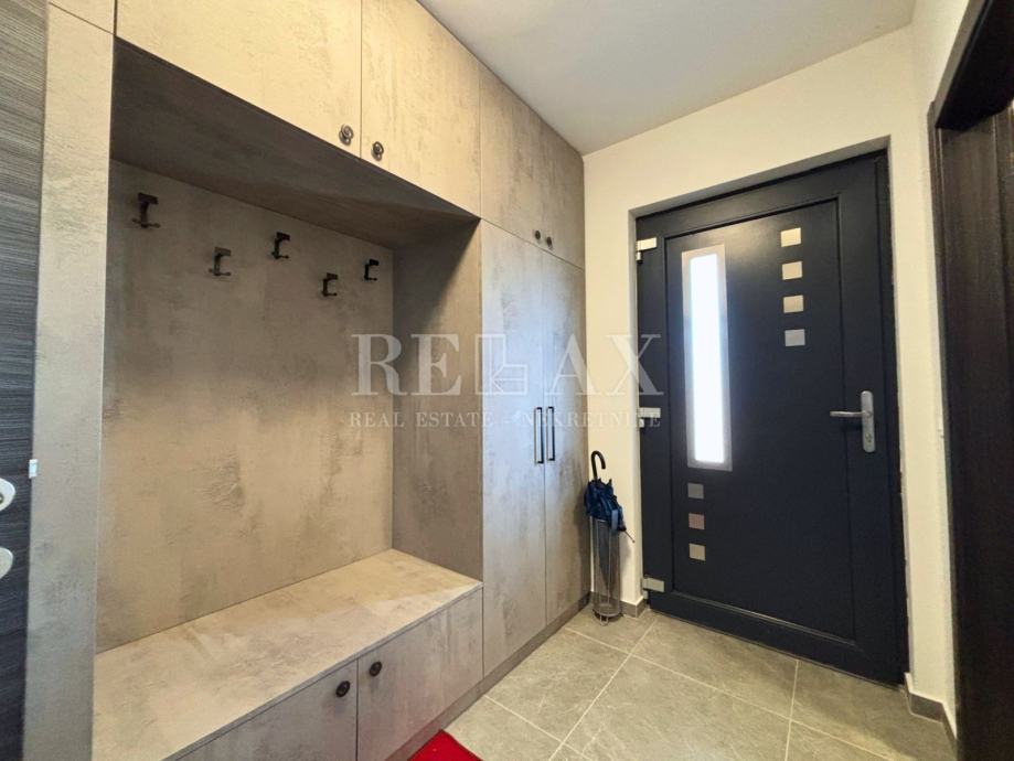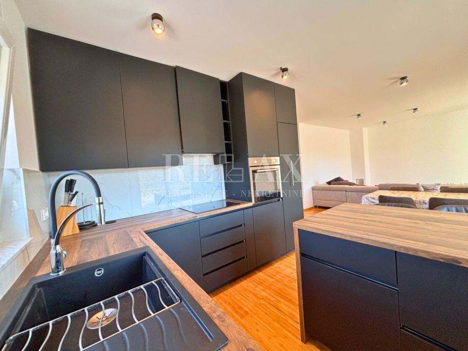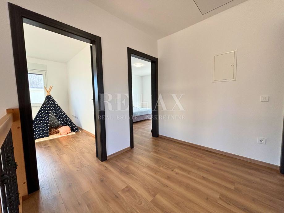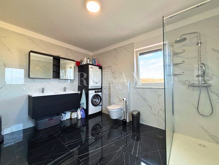Nekretnina se sastoji od prizemlja i kata. U prizemlju se nalazi ulazni hodnik, ostava, kupaonica, jedna spavaća soba te prostran dnevni prostor otvorenog koncepta koji objedinjuje kuhinju s otokom, blagovaonicu i dnevni boravak s izlazom na terasu, idealnu za boravak na otvorenom.