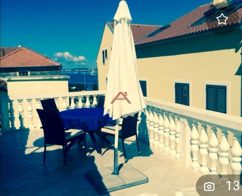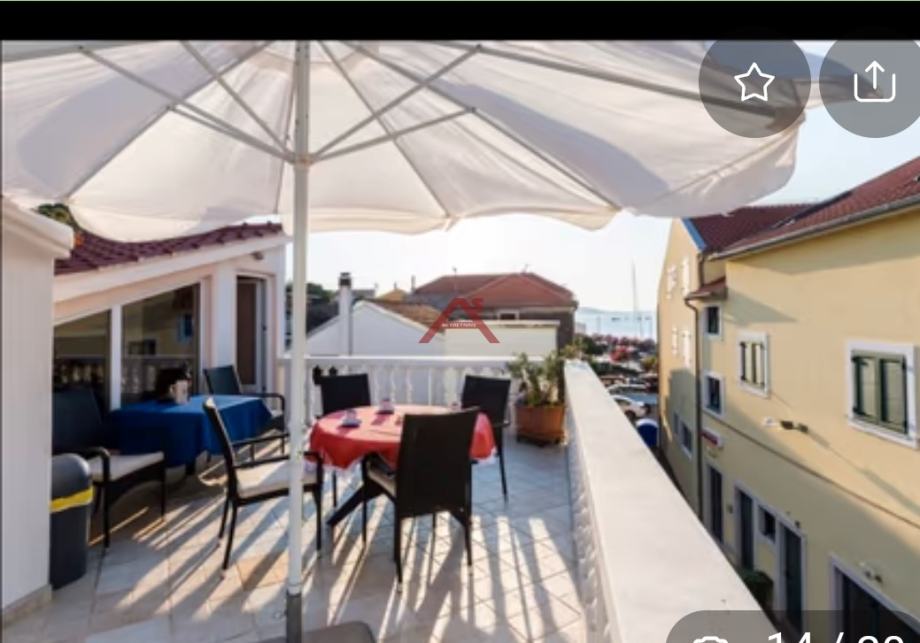 U našoj ponudi je lijepa kamena kuća neposredno uz more (drugi red ). Do prije 2 godine je korištena u ljetnoj sezoni. Kompletno je namještena i održavana. Tlocrtna veličina kuće je 11,48 X 8,61 m. Proteže se na 3 etaže od ukupno 3 apartmana (50+50+100 m2). Kuća je legalizirana, dokumentacija je uredna i vlasništvo bez tereta. Kuća ima javni pristupni put, a ispred kuće vlastiti parking. Na gornjoj etaži se nalazi velika terasa koja pruža prekrasan pogled. U neposrednoj blizini se nalaze; hotel, restorani, kafići, pošta, crkva i drugi sadržaji za ugodan boravak u mjestu. Do grada Šibenika je oko 15 km. Otok Murter je vrlo posjećena turistička destinacija, a kuća može biti dobra i isplativa investicija. Pozovite na broj 0989137596 kako bih dogovorili pregled kuće.