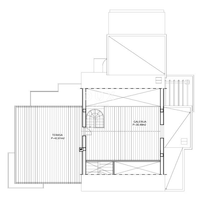 Stan se sastoji od prostranog open-space dnevnog boravka s kuhinjom i blagovaonicom, koji se proteže na prvu etažu zajedno s tri udobne spavaće sobe i dvije moderno uređene kupaonice. Na gornjoj etaži nalazi se galerijska soba – idealna kao radni prostor, dodatna spavaća soba ili zona za opuštanje.