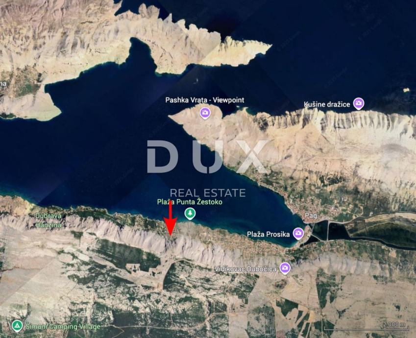 Prodaje se prostrano građevinsko zemljište na otoku Pagu, sa unutarnje strane otoka s pogledom na tzv. Paška vrata.