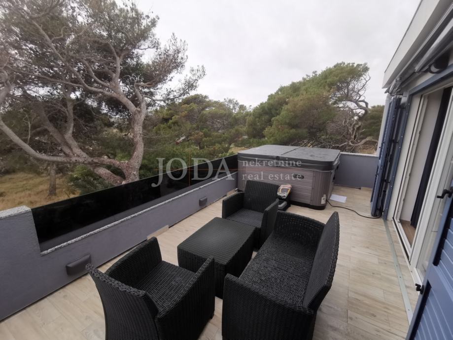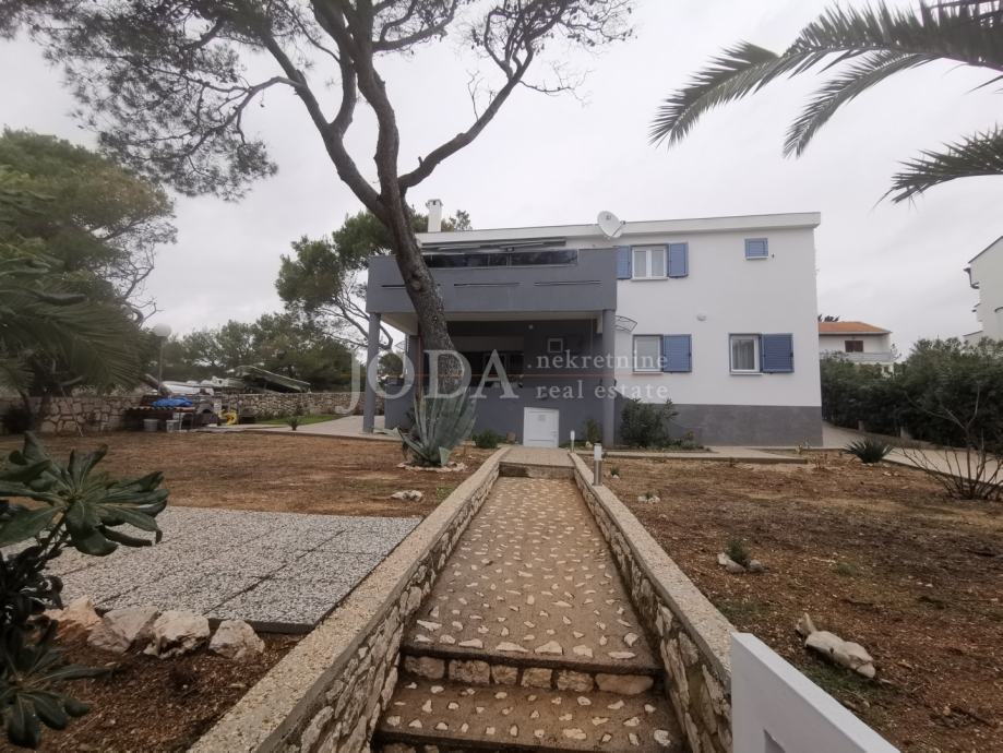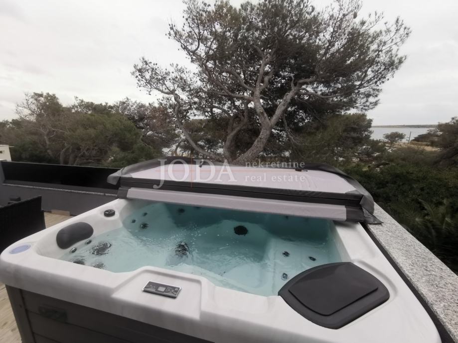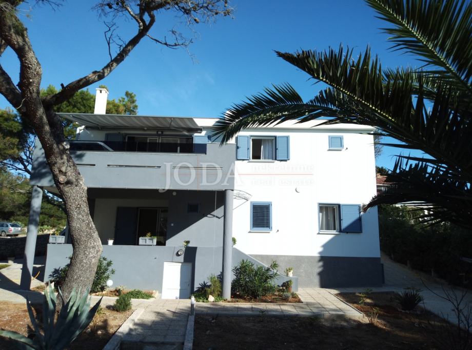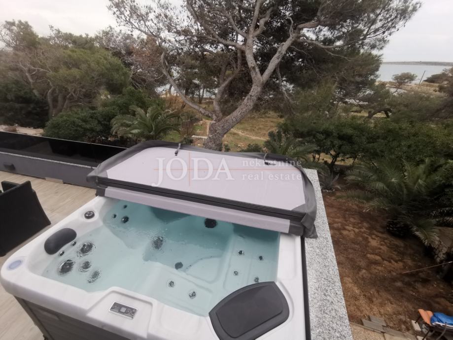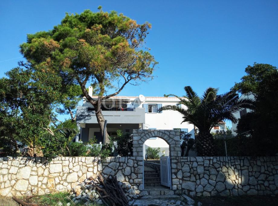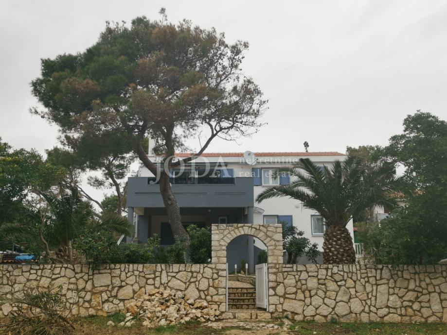 Prodajemo samostojeću kuću prvi red do mora do kojega se dolazi kroz stazu unutar borove šumice.Kuća ima dvije etaže, svaka po 120 m2. tlocrtno,plus podrum cca 40m2, koji se nalazi pod jednim dijelom kuće.Građena 1994.g, potpuno renovirana 2019. g. Donja etaža sastoji se od 4 spavaće sobe, dvije kupaone, kuhinje s dnevnim boravkom, velike terase. Kat se sastoji od 3 spavaće sobe, 3 kupaone, veliki dnevni boravak, kuhinje i velike terase na kojoj se nalazi jacuzzi. Iz prizemlja i kata pruža se pogled na more od kojeg je udaljena 40 metara.