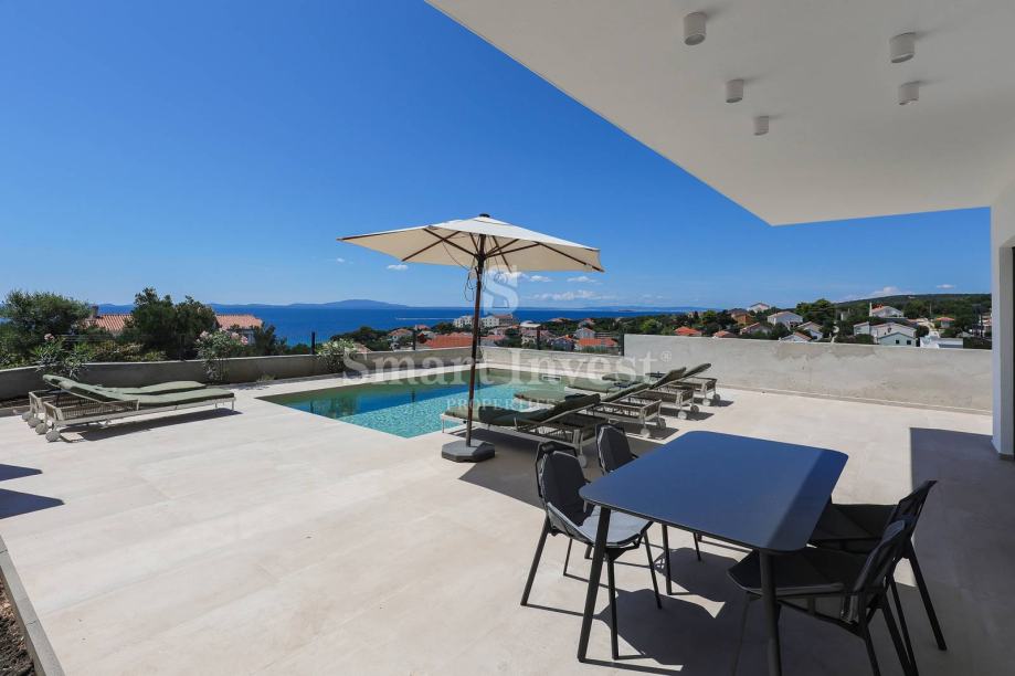 Okućnica vile pruža potpunu privatnost i opuštanje. Uživajte u bazenu s sunčalištem, gdje se možete osvježiti i opustiti u vrućim ljetnim danima. Ovdje se nalazi i roštilj za druženje s obitelji i prijateljima. Veliki parking omogućuje parkiranje za 3-4 vozila.