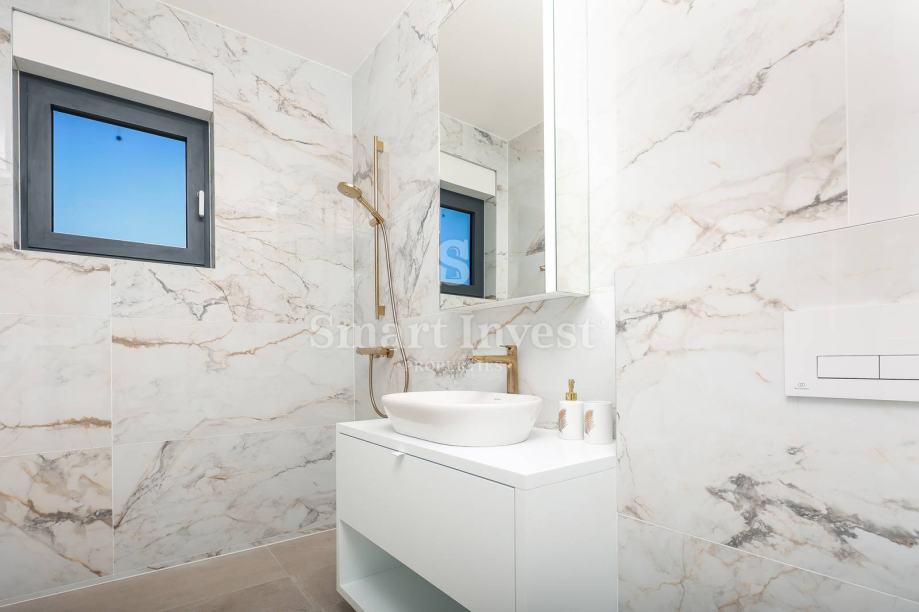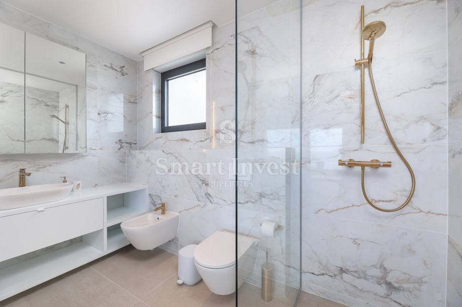 Vila neto površine 109,73 m2 smještena je na uređenom zemljištu od cca 350 m2, ima 3 spavaće sobe, 3 kupaonice + 1 WC.
