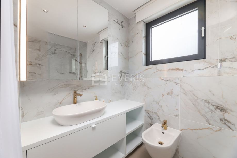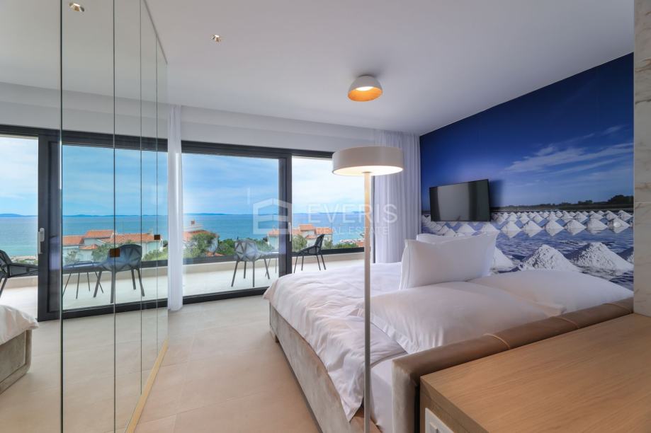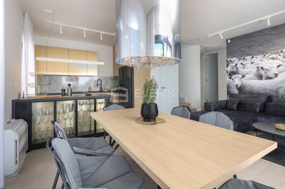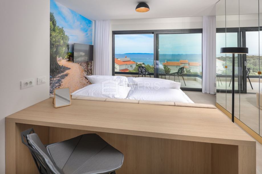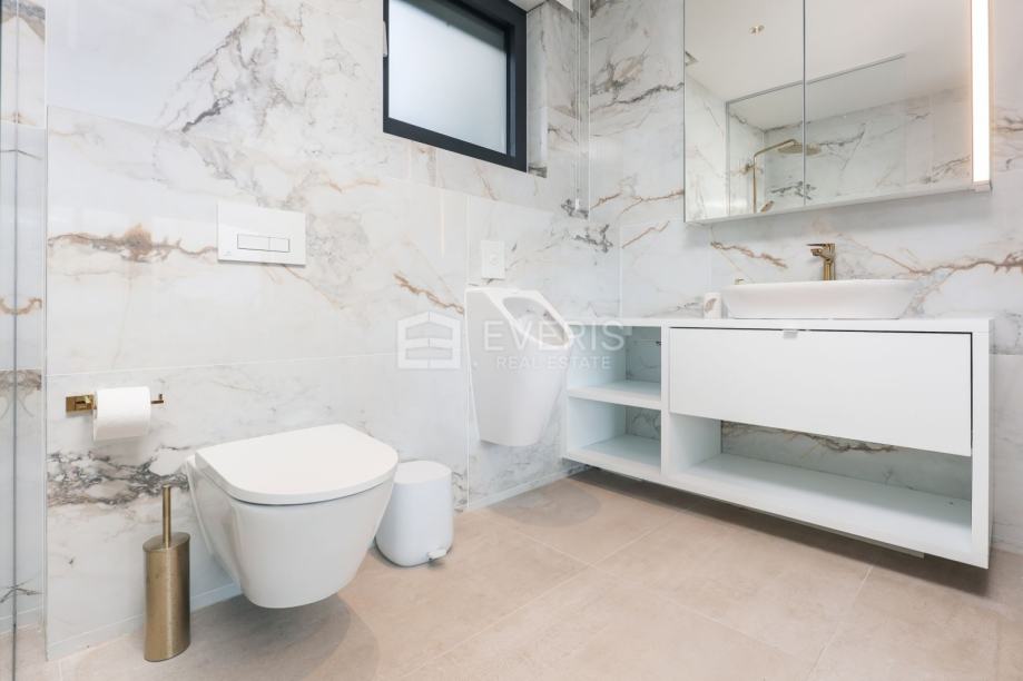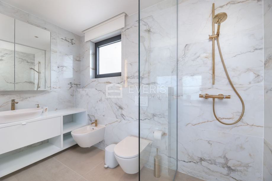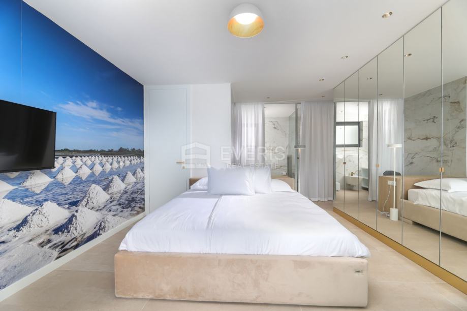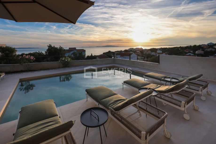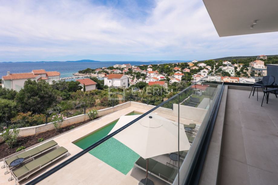 Nekretnina je kvalitetno građena i opremljena: fasada bijela sa Shucco alu stolarijom, troslojno staklo, profili 7,5 cm, sedam klima uređaja, sva oprema bazenska je prvoklasna s toplinskom pumpom i strojarnicom koja će biti veća i s mogućnošću dodatnog prostora za skladištiti zimi stvari kao npr. ležaljke, stolice, suncobrane.