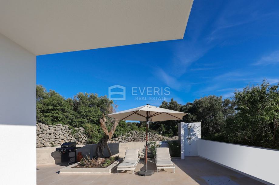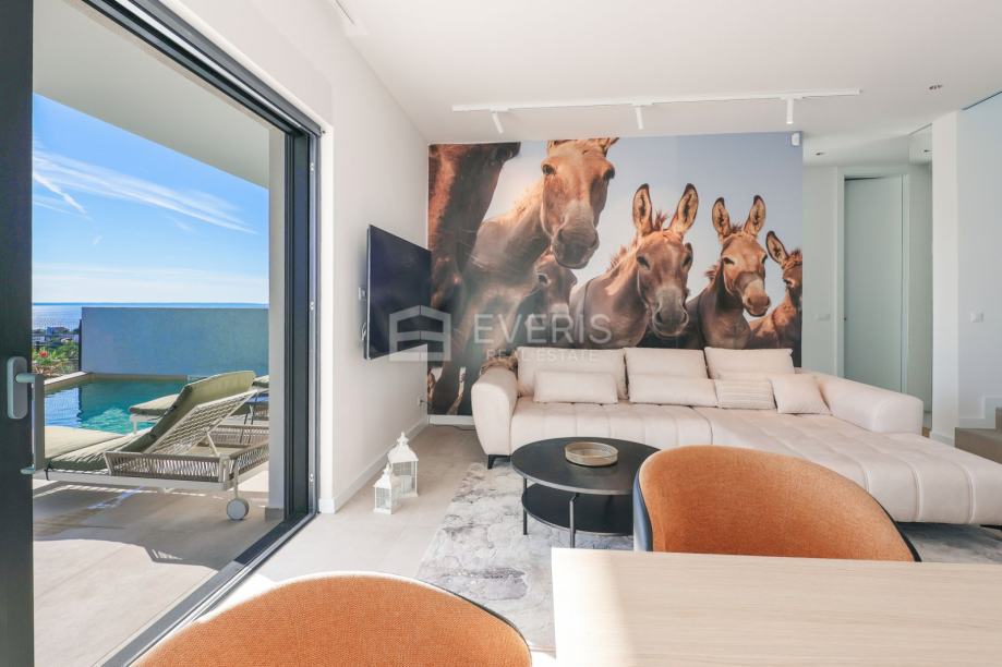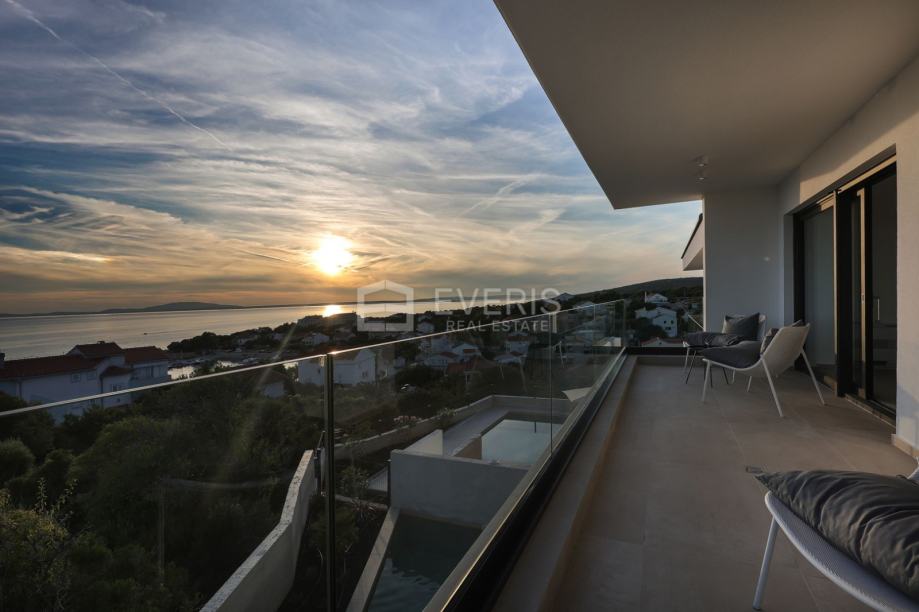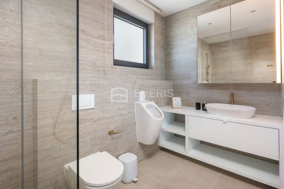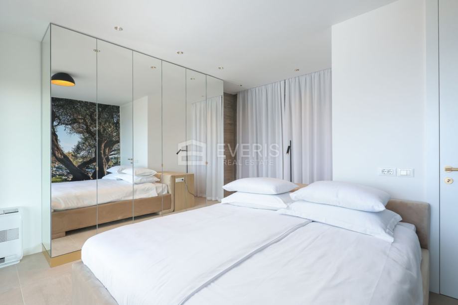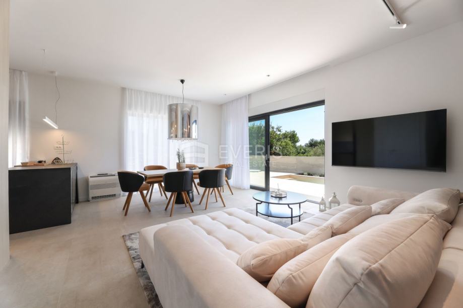 Nekretnina je kvalitetno građena i opremljena: fasada bijela sa Shucco alu stolarijom, troslojno staklo, profili 7,5 cm, sedam klima uređaja, sva oprema bazenska je prvoklasna s toplinskom pumpom i strojarnicom koja će biti veća i sa mogućnošću dodatnog prostora za skladištiti zimi stvari kao npr. ležaljke, stolice, suncobrane.