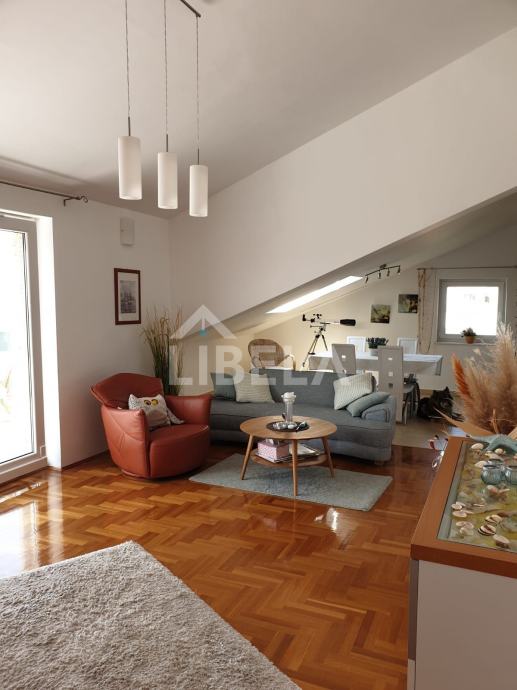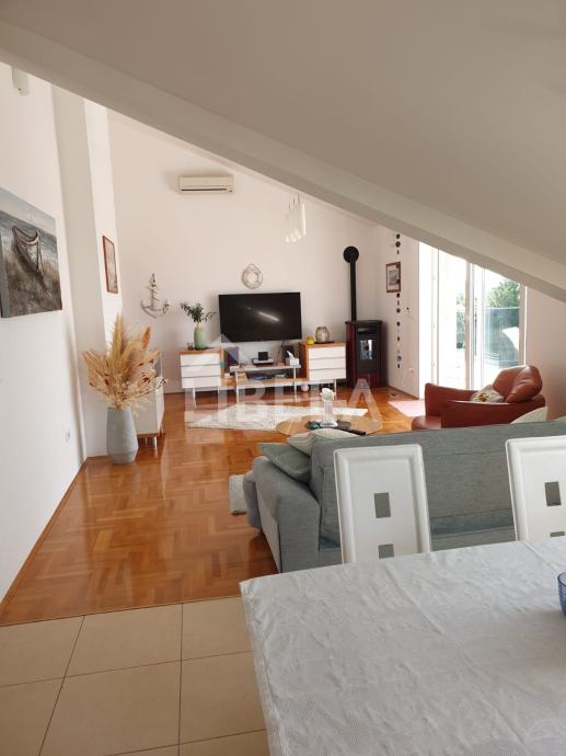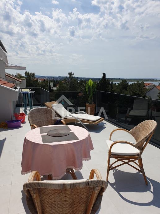 Prodaje se apartman u Novalji, naselje Gaj, penthouse od 80 m2 stambene površine, sa pogledom na more do kojeg je samo 150 m – plaža.