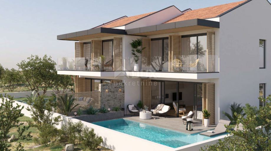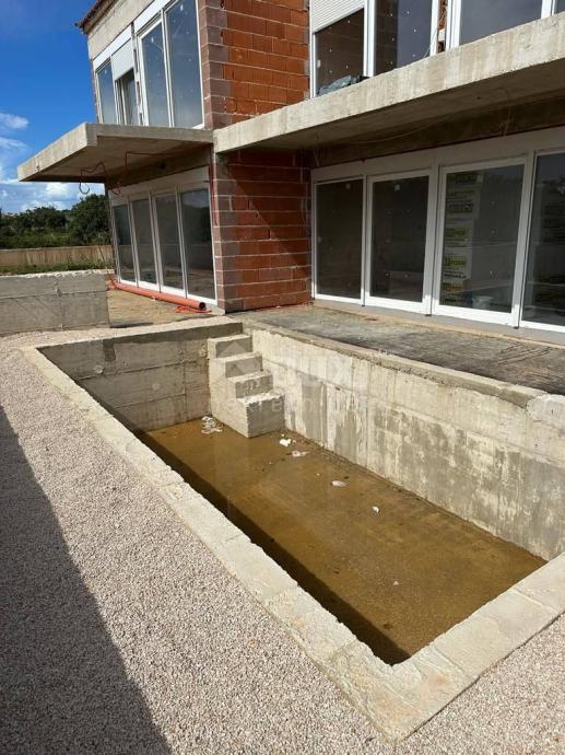 Prodajemo ovaj lijepi 3s+db stan s vlastitim dvorištem i bazenom u duplex kući od samo dva stana. Stan je u naravi dvoetažni sveukupne stambene površine od 118m2 gdje u prizemlju odnosno donjoj etaži nalazimo open space dnevni dio s kuhinjom i blagovaonicom i kupaonom, dok unutarnjim stepeništem na gornjoj etaži nalazimo kupaonu i tri spavaće sobe od kojih dvije imaju izlaz na balkon.