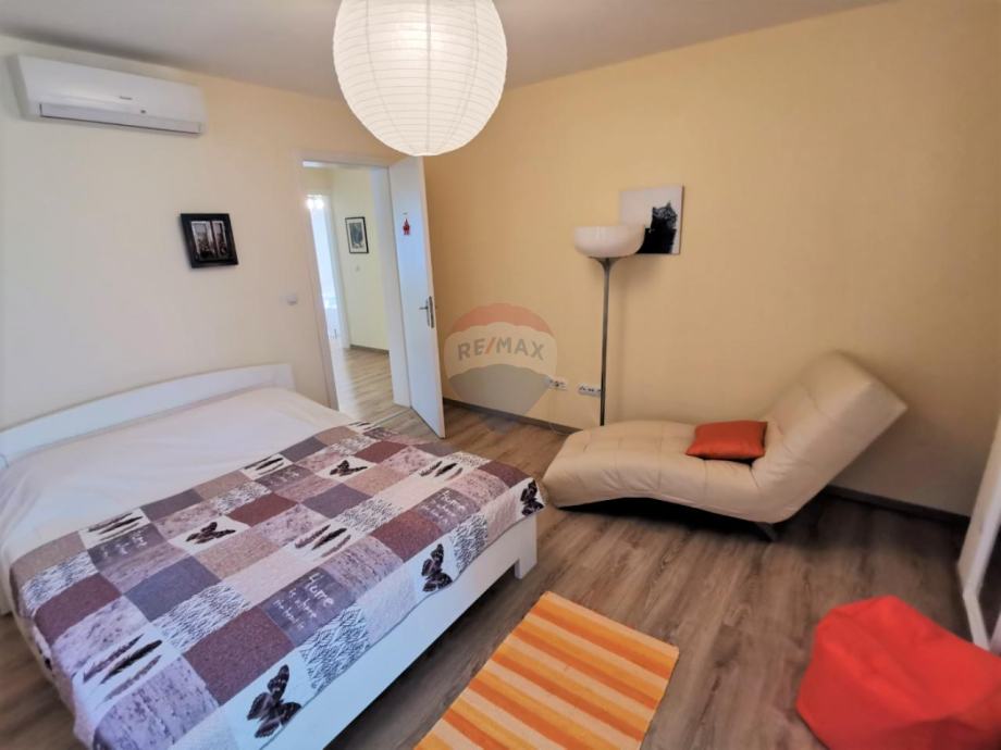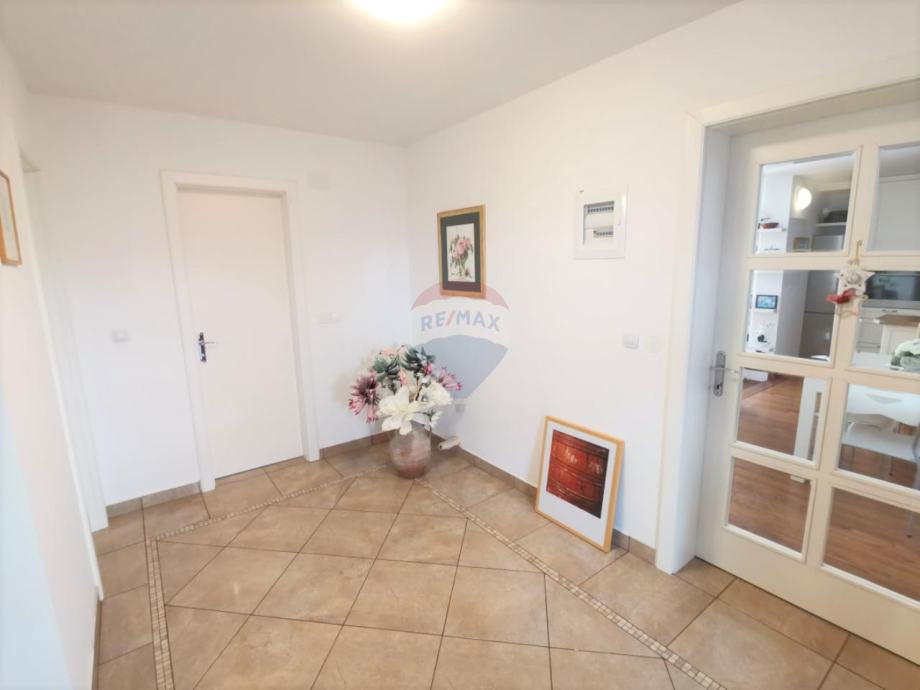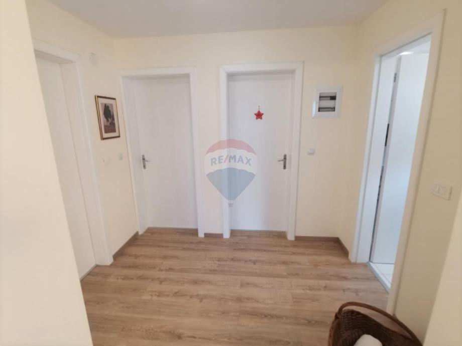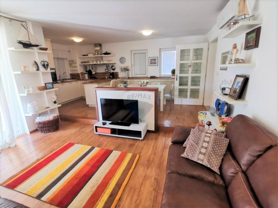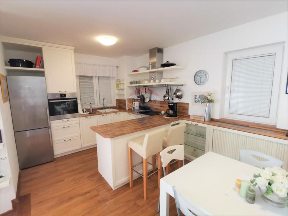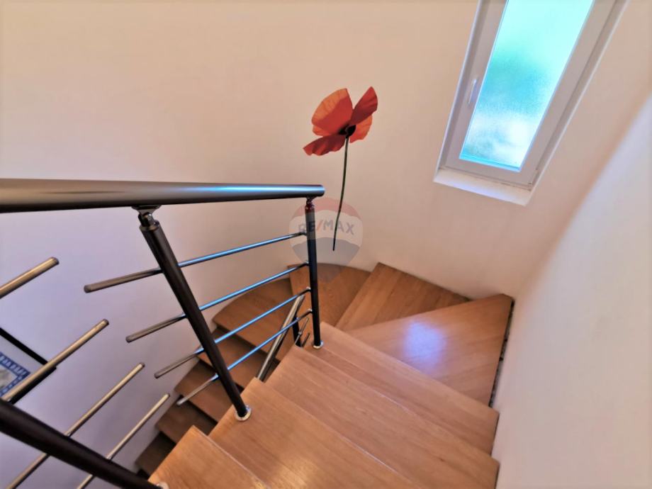 U prizemlju se nalaze dnevni boravak s izlazom na natkrivenu terasu, kuhinja, blagovaonica, kupaonica, spavaća soba, hodnik, a na katu su još 3 spavaće sobe i 2 kupaonice.