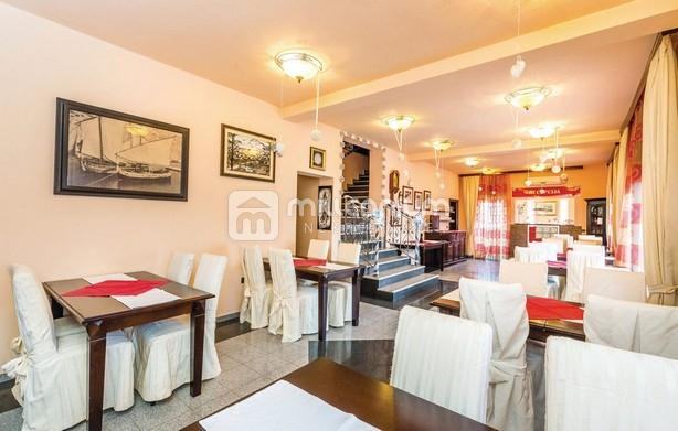 Prizemlje: velika sala s recepcijom, 2 toaleta (muški i ženski), kuhinja, ostava, 3 terase, stepenište i apartman od 44.2m2 (ulazna terasa, kuhinja s blagovaonicom i dnevnim boravkom, 2 spavaće sobe i kupaonice).