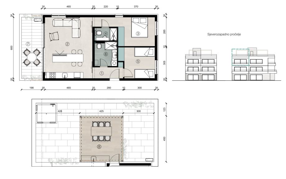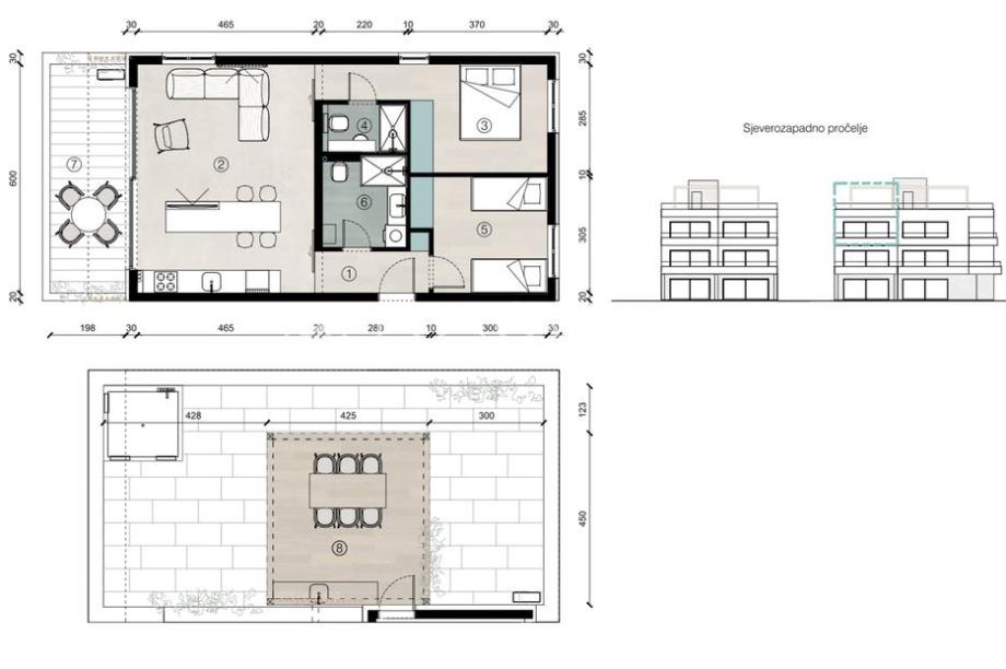 Otok Pag, plaža Perilo, trosoban stan u luksuznoj novogradnji PRVI RED (prodaja)