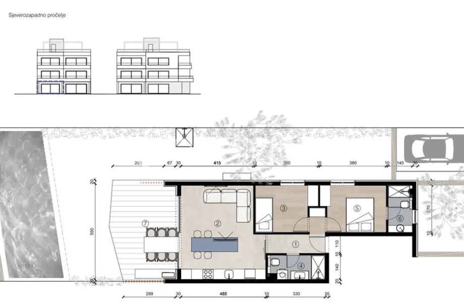 Otok Pag, plaža Perilo, trosoban stan u luksuznoj novogradnji PRVI RED (prodaja)