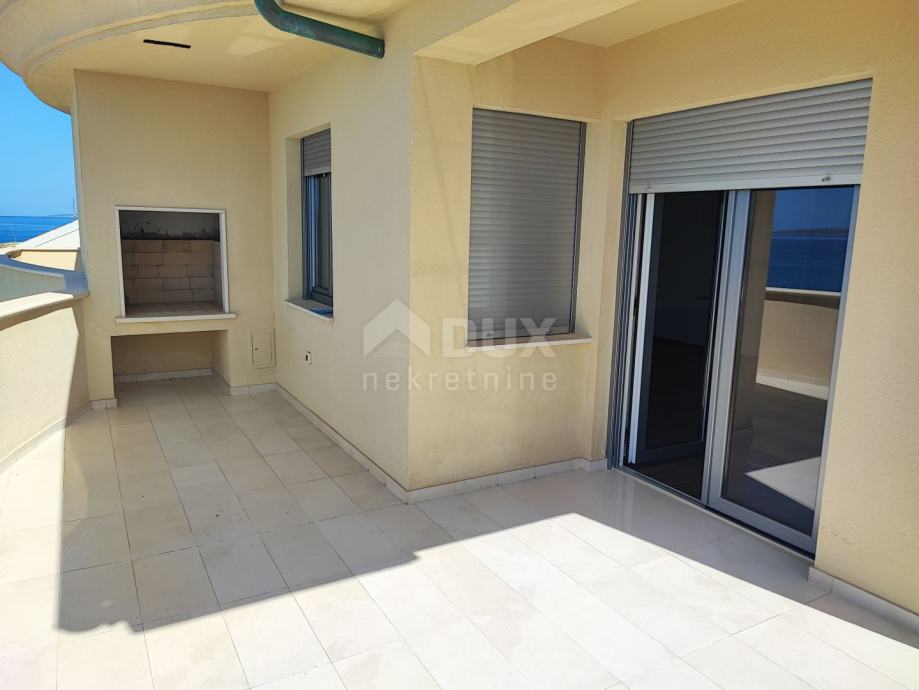 Prodaje se ovaj odličan 3s+db stan F na prvom katu u visokokvalitetnoj novogradnji na fenomenalnoj lokaciji u prvom redu do mora. Stan je koncipiran kao trosobni te se sastoji od ulaznog hodnika, kuhinje s blagovaonicom i dnevnim djelom s izlazom na terasu, tri spavaće sobe i dva kupatila, sveukupne površine od 120m2. S terase se pruža predivan pogled na more i akvatorij, također na terasi nalazimo uzidani roštilj, pripada mu jedno parkirno mjesto u vlasništvu.