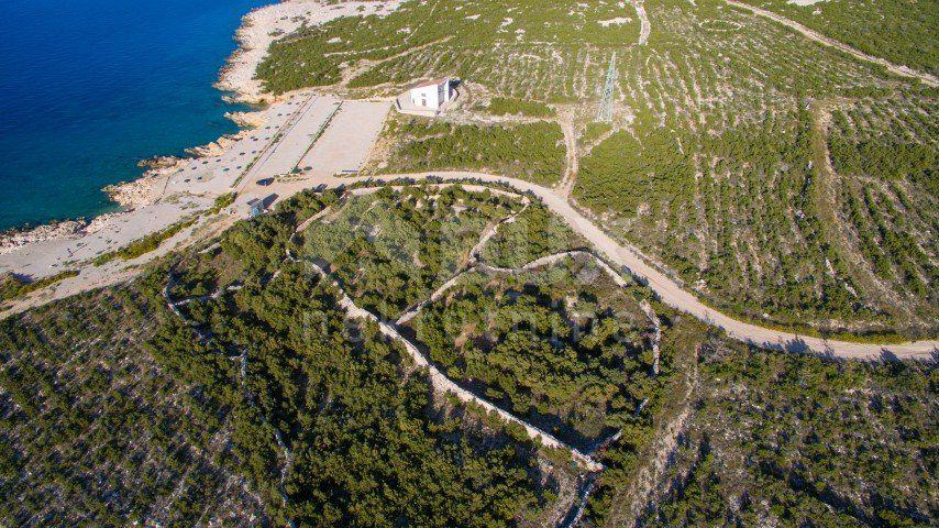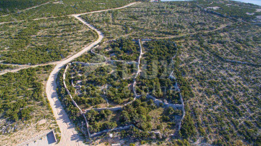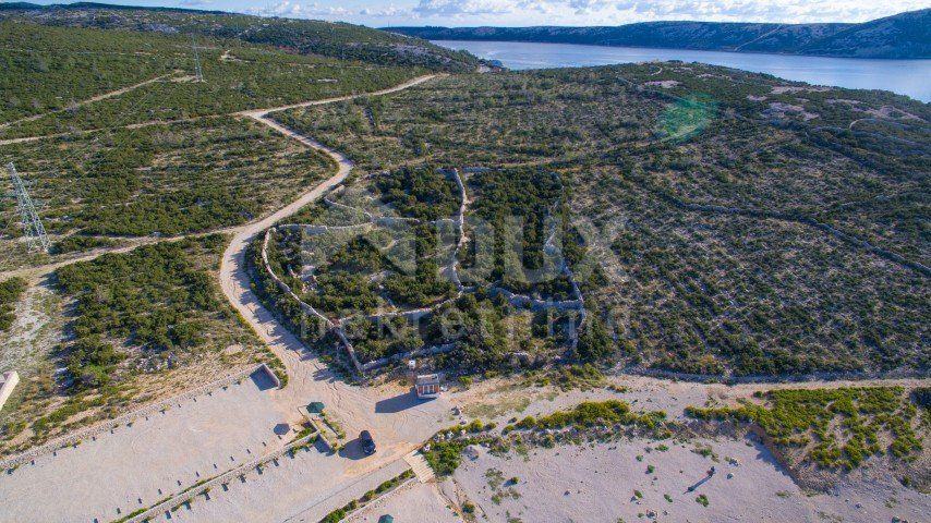 Otok Pag, Novalja, teren od 678 m² prvi red do mora. Jedinstvena nekretnina na otoku pored mora privući će zaljubljenike u robinzonski turizam ili način života. Ravan teren okružen je suhozidom, trenutno nije u građevinskoj zoni, ali pogodan za kolibu ili suhu marinu.