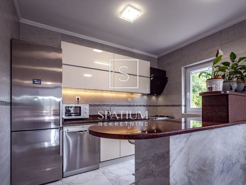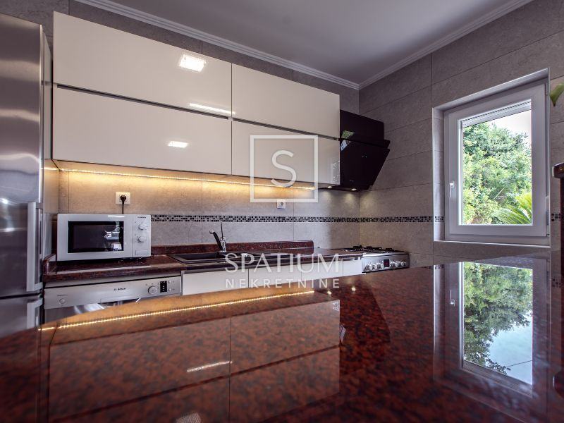 Kuhinja je opremljena svim potrebnim aparatima te povezana s blagovaonicom i dnevnim dijelom iz kojeg se izlazi na prostranu terasu, savršenom za uživanje i opuštanje na otvorenom.