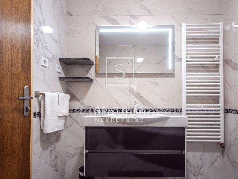 Stan se sastoji od tri spavaće sobe, dnevnog boravka, kuhinje s blagovaonom, kupaonice, toaleta i hodnika. Sobe su prostrane i svijetle, svaka s duplim krevetom.