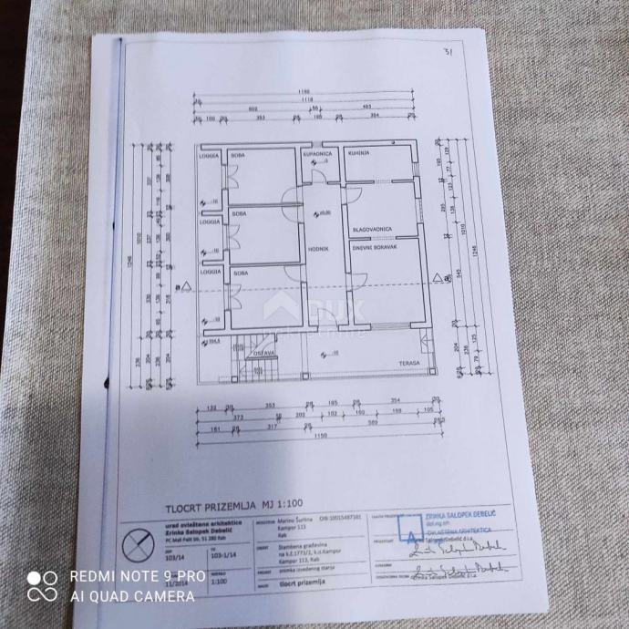Kuća sa okućnicom i pogledom na more površine 208m² sa okućnicom 1200m2. Kuća se nalazi na mirnoj lokaciji, okružena zelenilom, 800m od plaže. Odlična pozicija, bez buke i sa pogledom na otok Pag. U sklopu okućnice nalazi se maslinik sa 10-ak maslina.