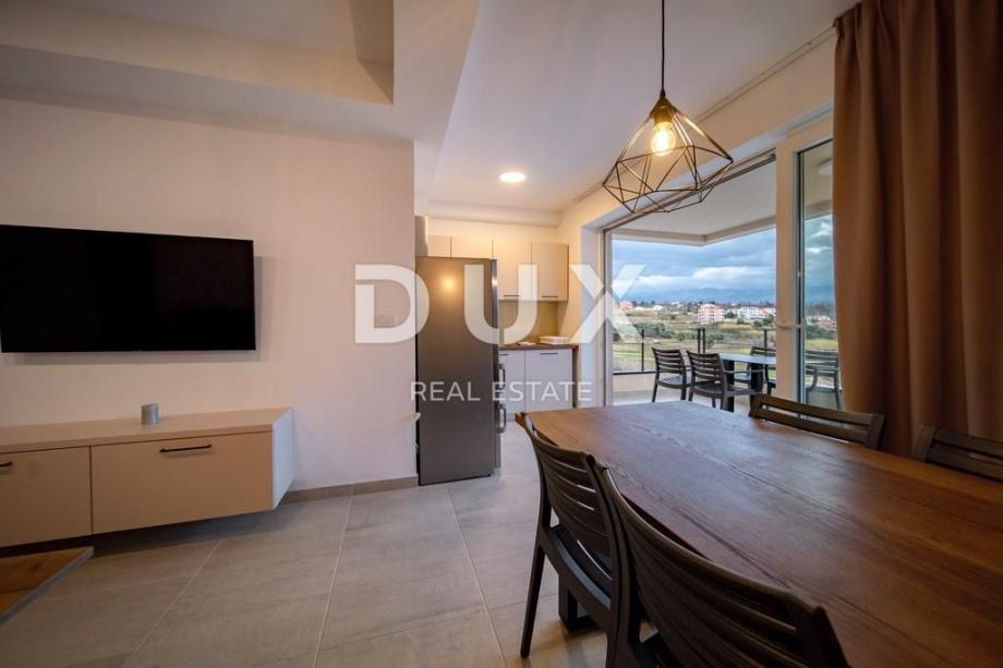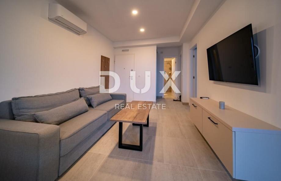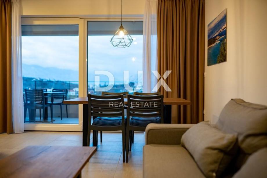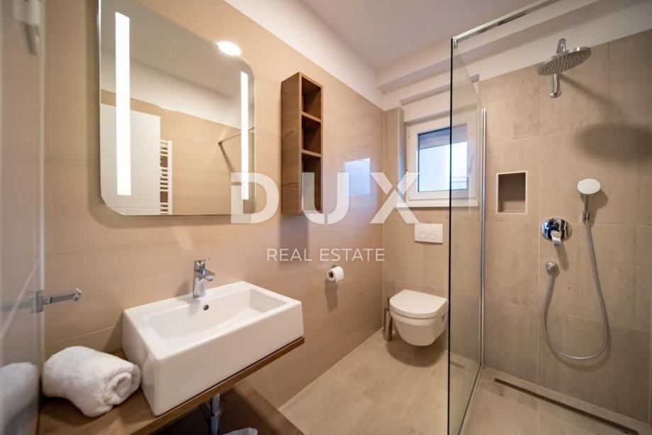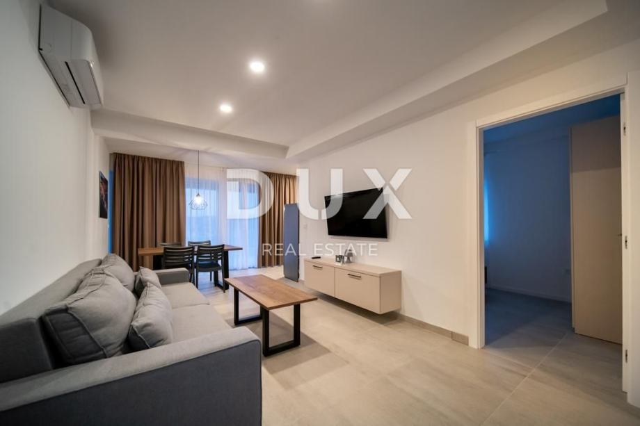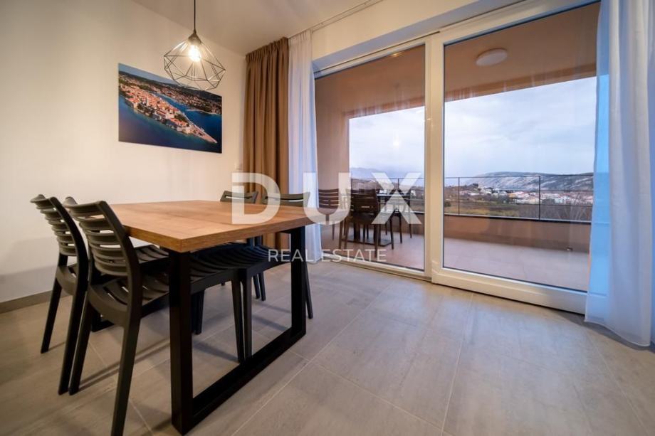 Svaki apartman je luksuzno opremljen (podno grijanje, keramičke pločice, inverter klime, kuhinjski mali aparati, perilice, smart led tv 150 cm, led rasvjeta…), te se sastoji od 2 spavaće sobe, dnevnog boravaka, kuhinje, kupaone/WC i velike terase s pogledom na Lopar.