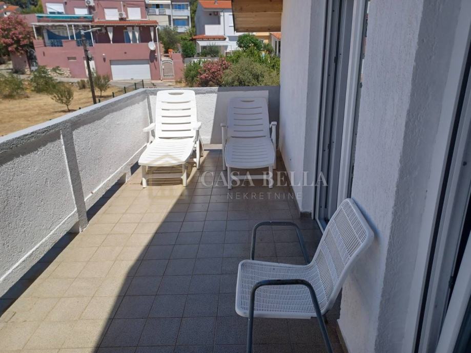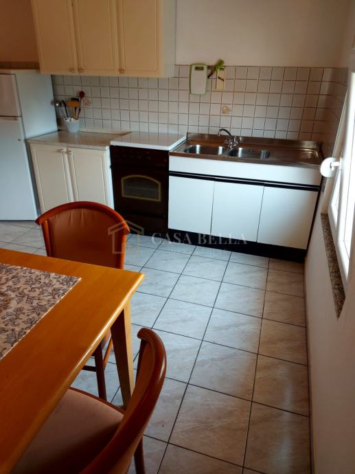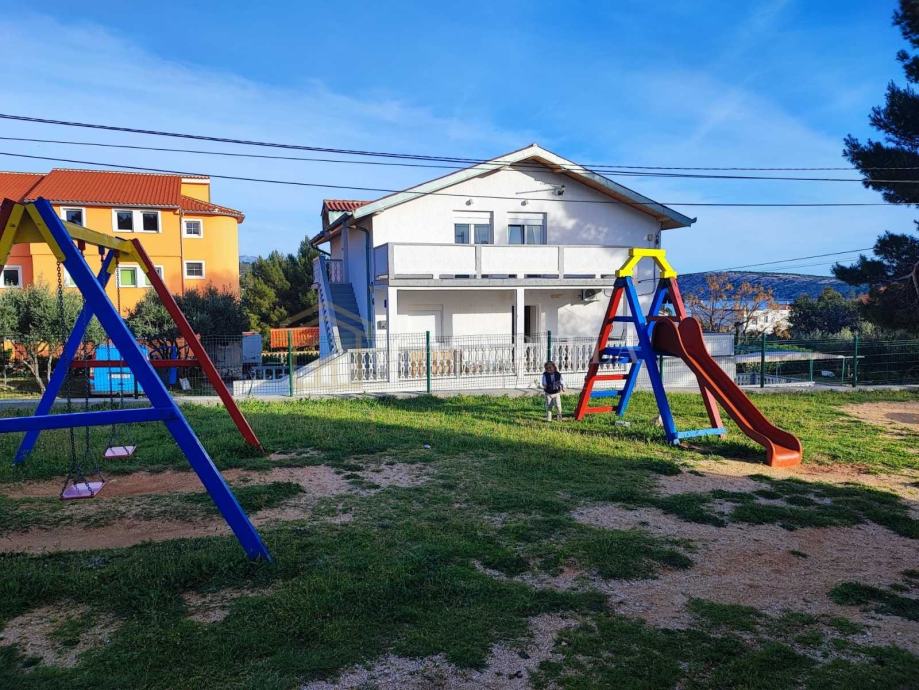 Kuća ima poseban ulaz sa glavne ceste. Okućnica je održavana sa 30-tak maslina, vrtom, roštiljem, a na 1300m2 terena ostaje dovoljno prostora za bazen, jacuzzi , ovisno o željama vlasnika.