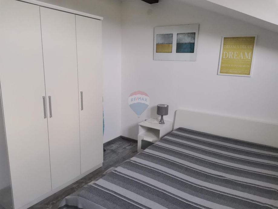 Stan se nalazi na zadnjem katu kuće, a sastoji se od 2 spavaće sobe, open space kuhinje s blagovaonom i dnevnim boravkom, kupaone i terase. Iz dnevnog boravka se pruža prekrasan pogled na cijelu uvalu. Okućnica na korištenje. Osiguran parking.