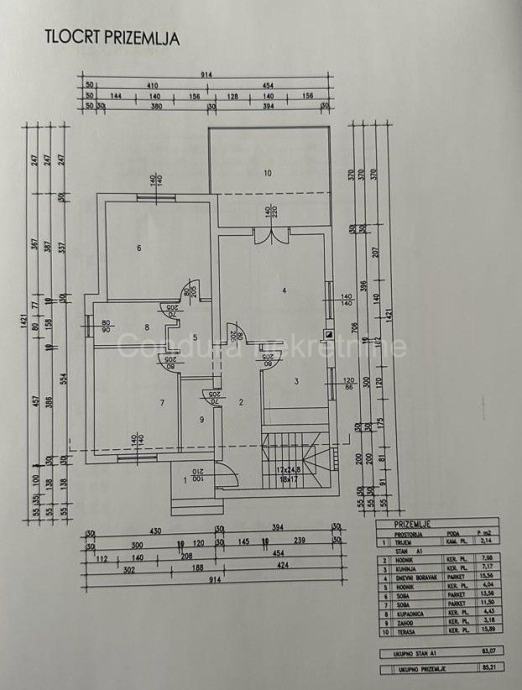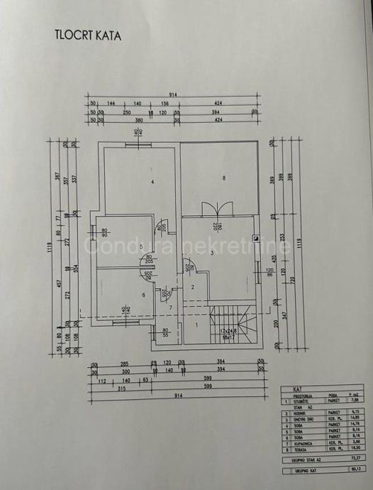 Ukupne površine 219 m², kuća se nalazi na zemljištu veličine 656 m² i prostire se na tri etaže – podrum, prizemlje i kat.