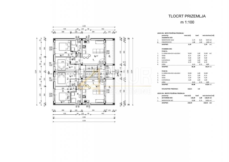 Predviđene su 4 stambene jedinice (2s+db, lođa).