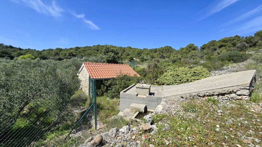 Prekrasni posjed na otoku Visu koji se sastoji od 4 legalizirana objekta (2 stambena objekta za rekonstrukciju, svaki pov. cca 65 m2, i 2 poljoprivredna objekta pov. 25 m2 i 15 m2) i poljoprivrednog zemljišta površine 36.000 m2 sa 180 stabala maslina, na mirnoj i lijepoj lokaciji na južnoj strani otoka Visa, smješteno 1 km od mora, prilaz autom, priključak vode, dvije gustirne.