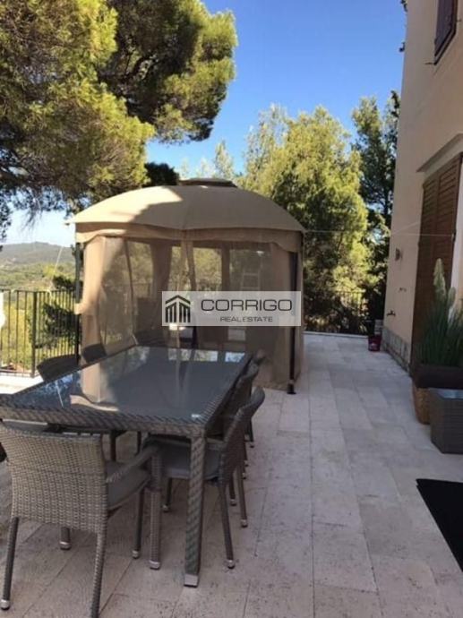 U potpunosti je rekonstruirana, namještena i opremljena na 3 etaže: (88m2, 85 m2 i 64 m2) s prekrasnim pogledom na more, terasama i bazenom (30 m2), te velikim parkingom.