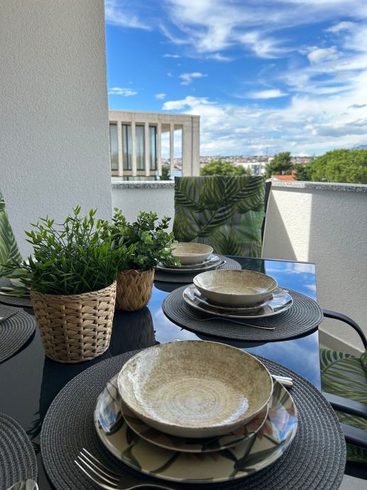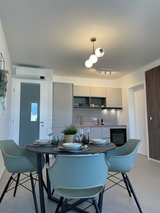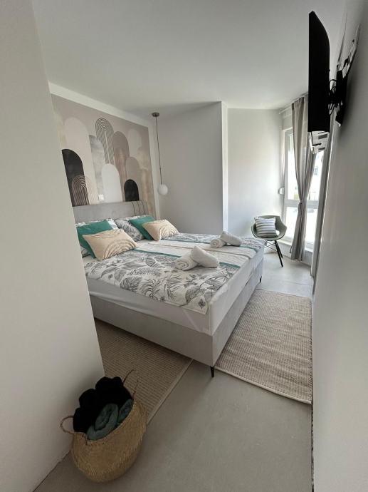 Apartman ima 2 spavaće sobe, 2 kupaonice 2 parkirna mjesta i terasu od 10 m2.