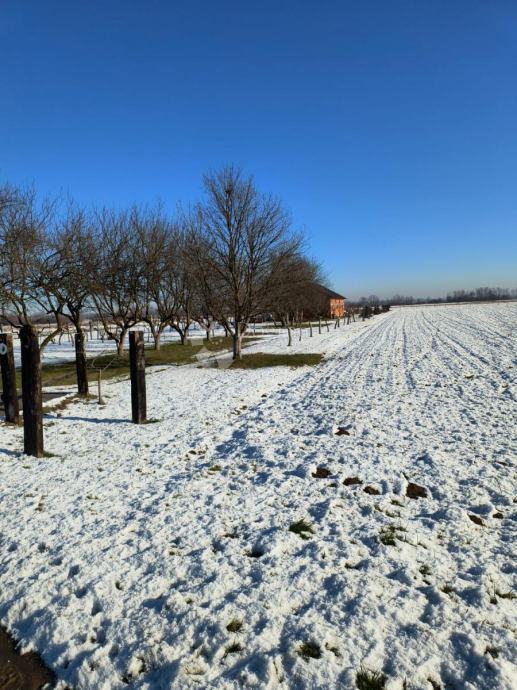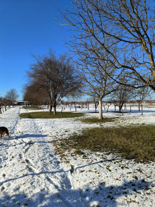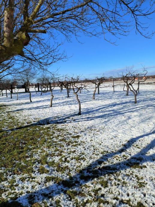 Na zemljištu se nalaze tri parcele koje izlaze na cestu, a širina uz cestu iznosi 26,5 metara, čime se osigurava jednostavan pristup i praktičnost za sve buduće vlasnike. Na tim parcelama posađeno je 100 voćaka, a za ugodan boravak i rad osigurana je sjenica te objekt dimenzija 20x10 metara, izgrađen 2000. godine i renoviran 2023., kada je postavljeno novo krovište. Iako objekt nema građevinsku dozvolu jer se taj dio zemljišta ne nalazi u građevinskoj zoni, uz otvorenje OPG-a može poslužiti kao idealno skladište ili prostor za operativne aktivnosti.