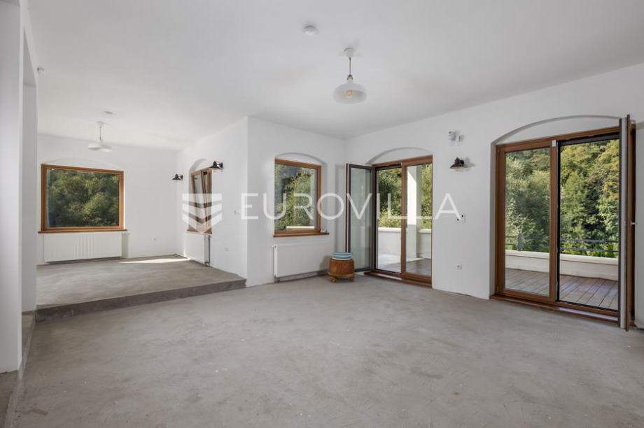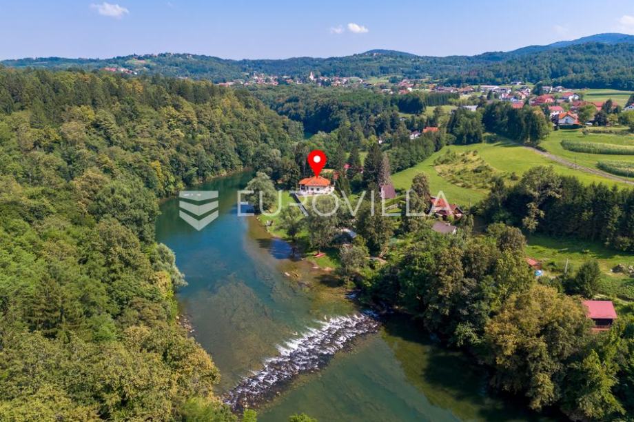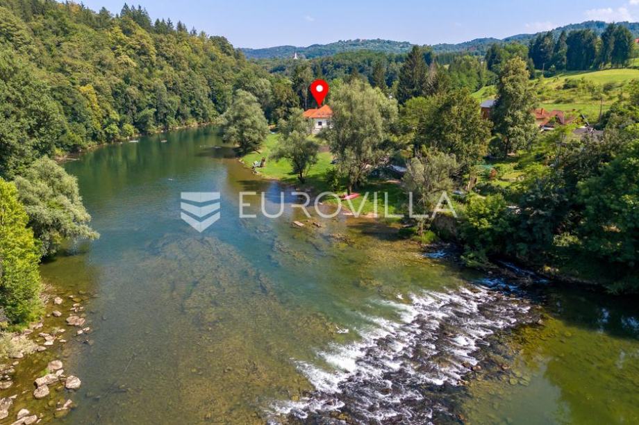 Ozalj, Kamanje, prekrasna novoizgrađena obiteljska vila uz samu rijeku Kupu. Površine 580m2 smještena na zemljištu 1.600m2. Kuća je razvedena u 3 etaže.Suteren: konoba s otvorenim kaminom, vinski podrum, apartman, kuhinja s blagovaonicom, kupaonica s wc-om, tehnički dio za kotlovnicu i toplu...