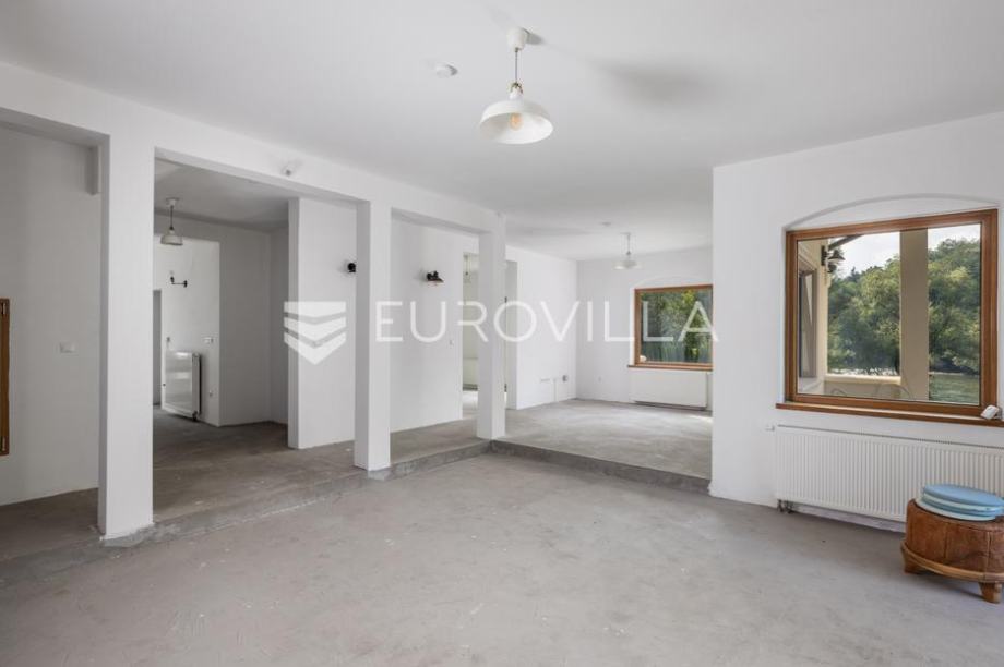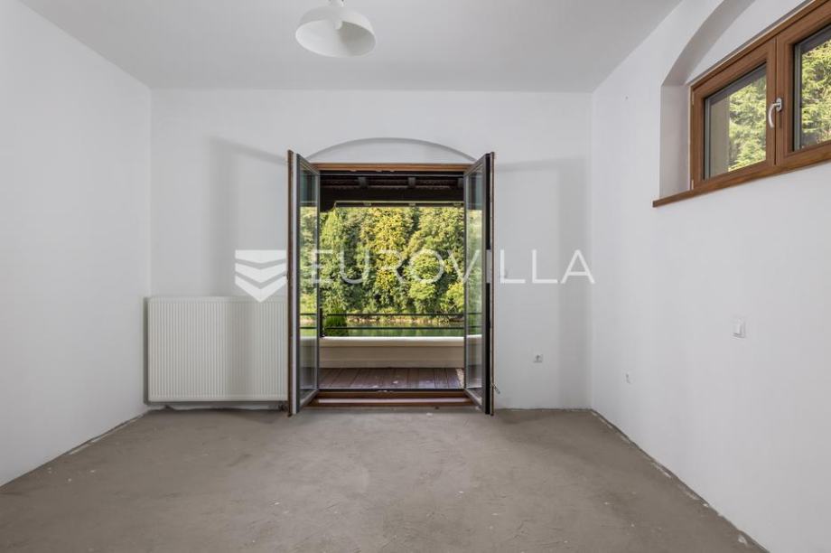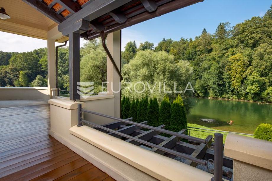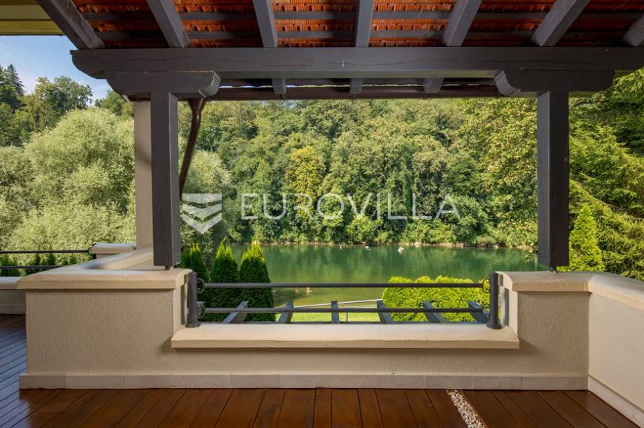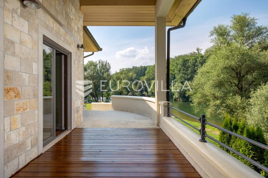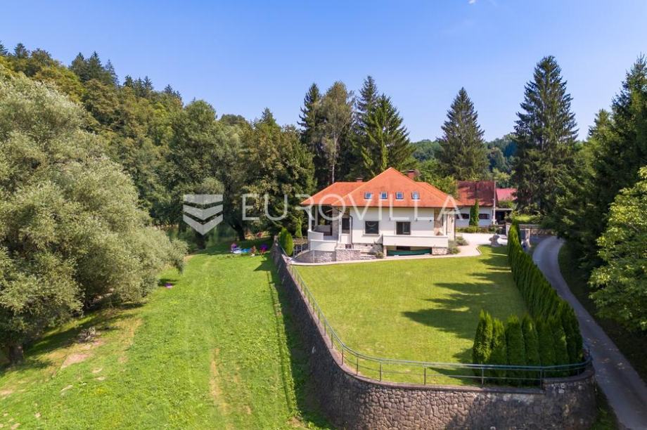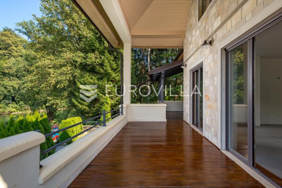 Ozalj, Kamanje, a beautiful newly built family villa next to the Kupa river itself. Area 580m2 located on a plot of 1,600m2. The house is divided into 3 floors.Basement: tavern with open fireplace, wine cellar, apartment, kitchen with dining room, bathroom with toilet, technical part for boiler...
